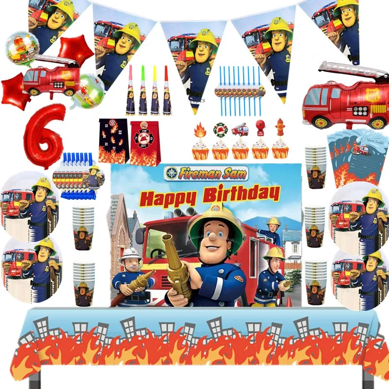 Пожарный Сэм одноразовая посуда детский душ дети партии поставок бумажные тарелки и стаканы пожарная машина номер воздушный шар День рождения мальчиков