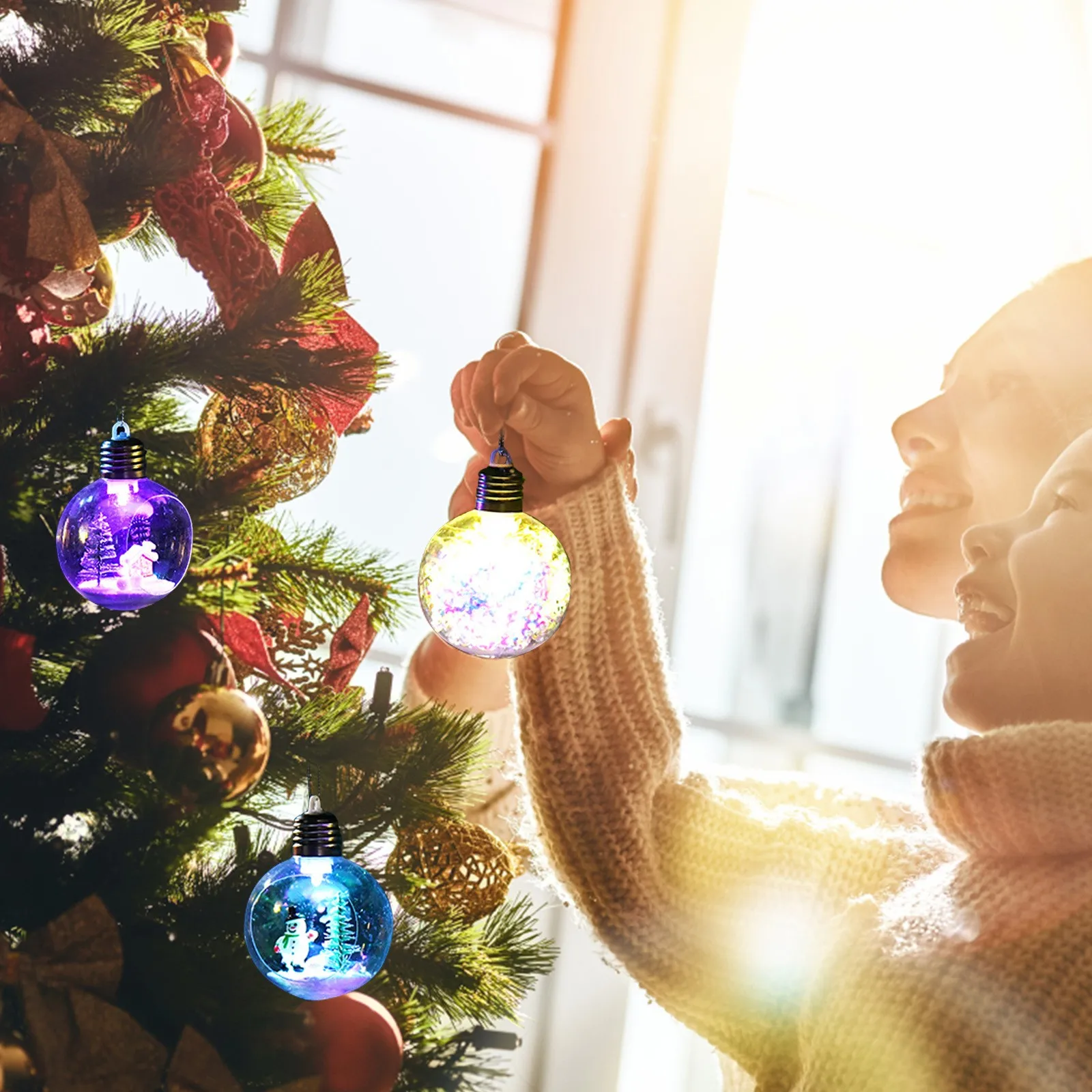 Рождественские украшения с прозрачными шариками, светодиодная подсв...