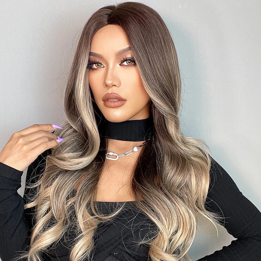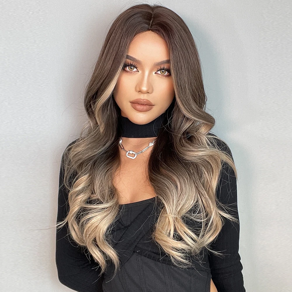 Синтетический коричневый парик LOUIS FERRE, парик с естественным видом, парик средней длины, термостойкие длинные волнистые парики с Омбре, светлые волосы для женщин, афро