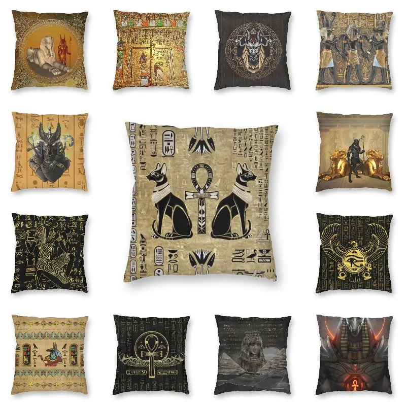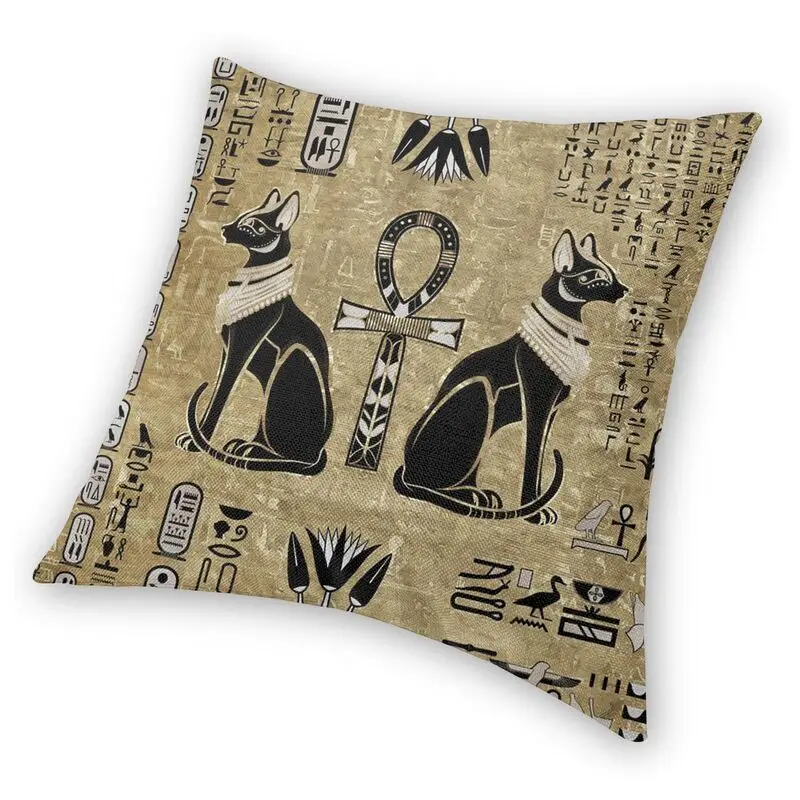 Наволочка Bastet с двусторонним принтом египетских кошек и Анкх, напольная подушка, чехол для автомобиля, декоративная подушка на заказ
