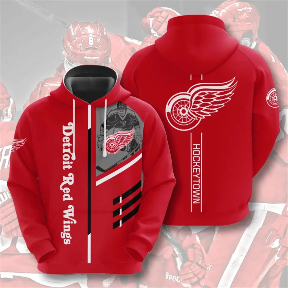 Детройт Мужская мода 3D Толстовка Белый Красный строчка геометричес...