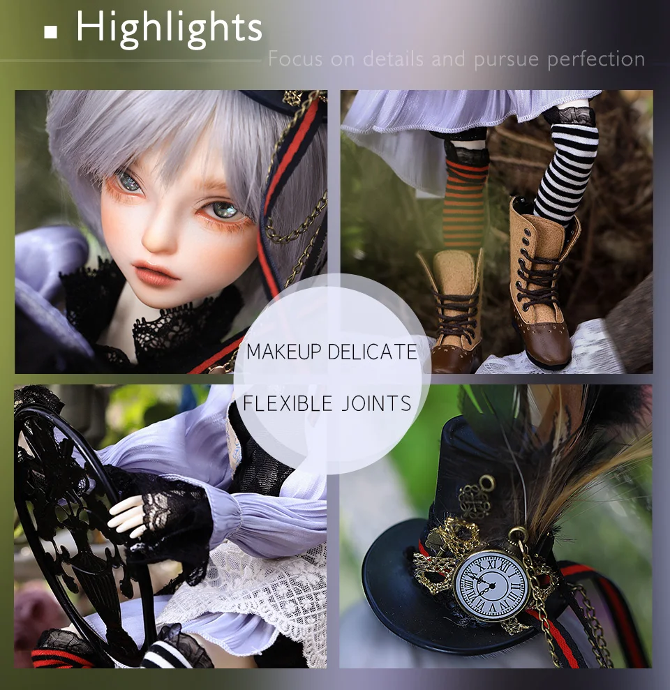 1. Сильная команда: фокусируется на кукле BJD более 10 лет, интегрирует r & d, дизайн, производство и продажи; Владеет оригинальным старшим художником, моделями, комодом, визажистом, от создания, дизайна, до формы, формовки, шлифовки, макияжа, А затем к дизайну одежды и производству до сот рабочих процедур, таких как шитье, моделирование, все завершенные опытными мастерами, представлены вашей кукле BJD каждый стиль уникален и высоко Эстетическая ценность искусства.2. Отборные высококачественные исходные материалы: отборная Высококачественная смола, изысканная и гладкая, удобная на ощупь.3. Изысканный трехмерный макияж: профессиональная команда макияжа, передовые чистые ручные технологии распыления, чтобы создать реалистичный тонкий макияж!4. Переменное моделирование DIY: гибкие соединения, сильная пластичность, различные части могут быть преобразованы по желанию и позе; Также можно изменить макияж, одежду, глаза, волосы и стайлинг.5. Персонализированные настройки: ручная работа, в соответствии с вашими требованиями, настроить вашу эксклюзивную куклу BJD.6. Изысканная подарочная упаковка: фирменная официальная Изысканная упаковочная коробка, Подарочная новая сфера, более красивая и приличная.
