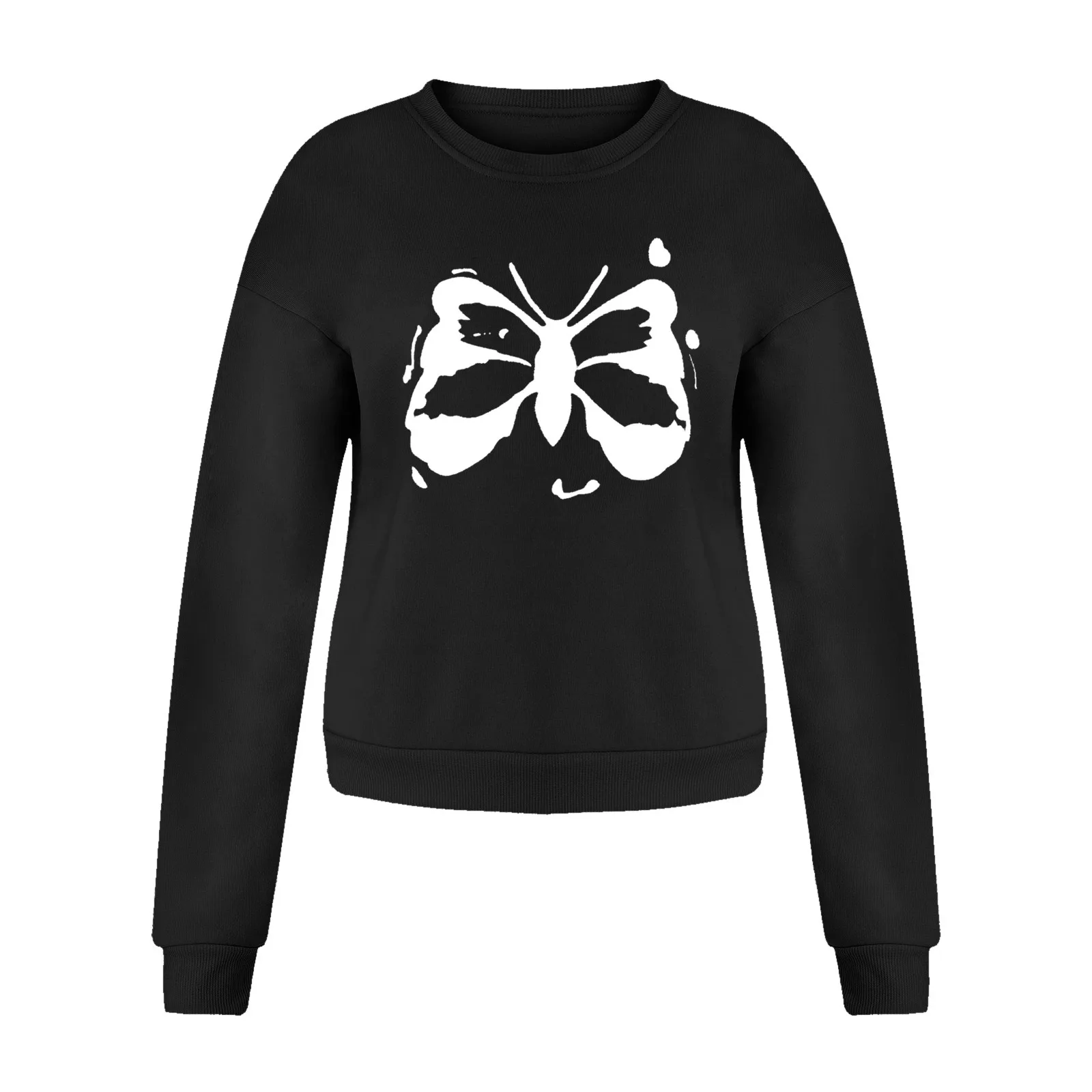 Женские Повседневное с длинным рукавом свитшот с круглым вырезом с принтом в виде бабочек, Свободный Топ, одежда для мальчиков