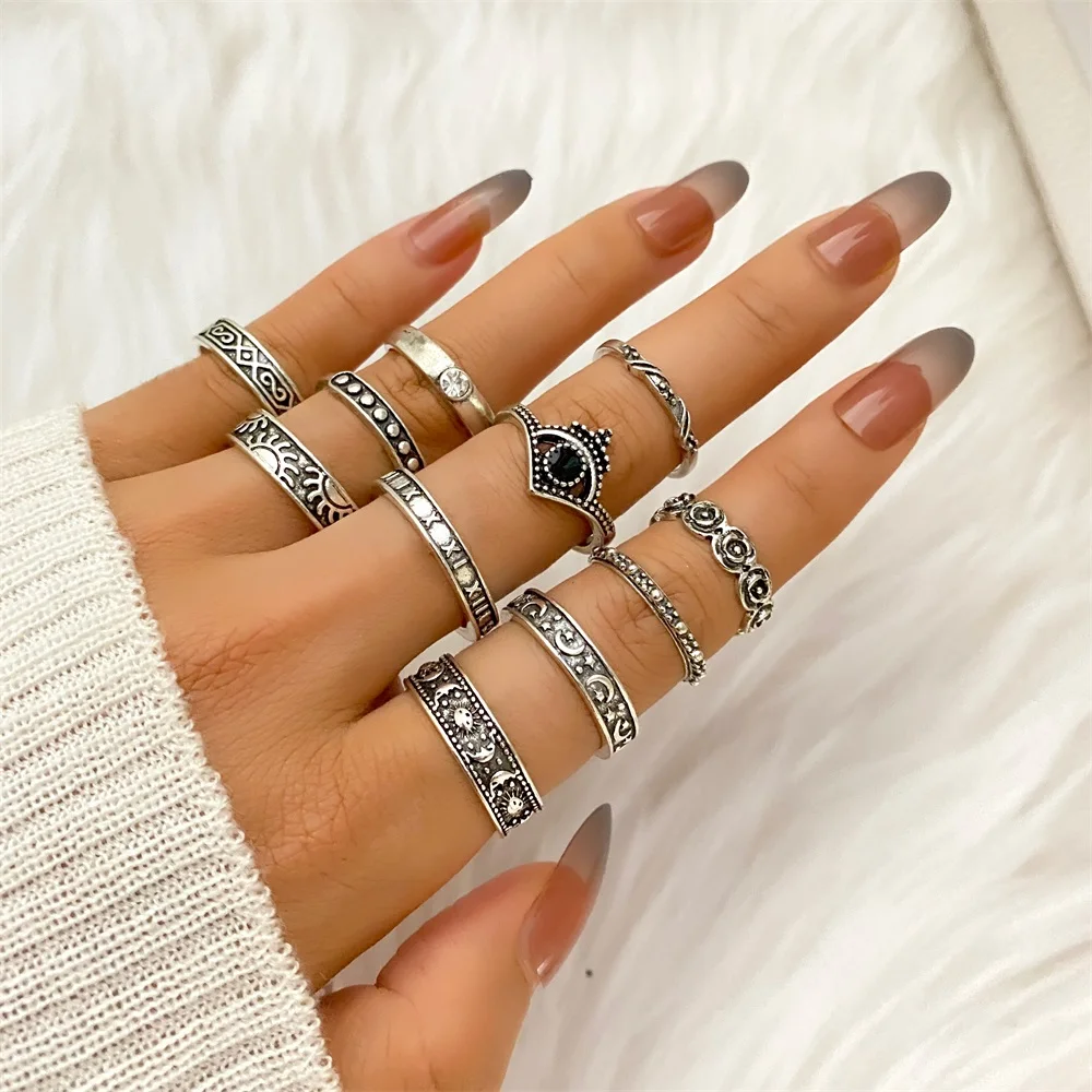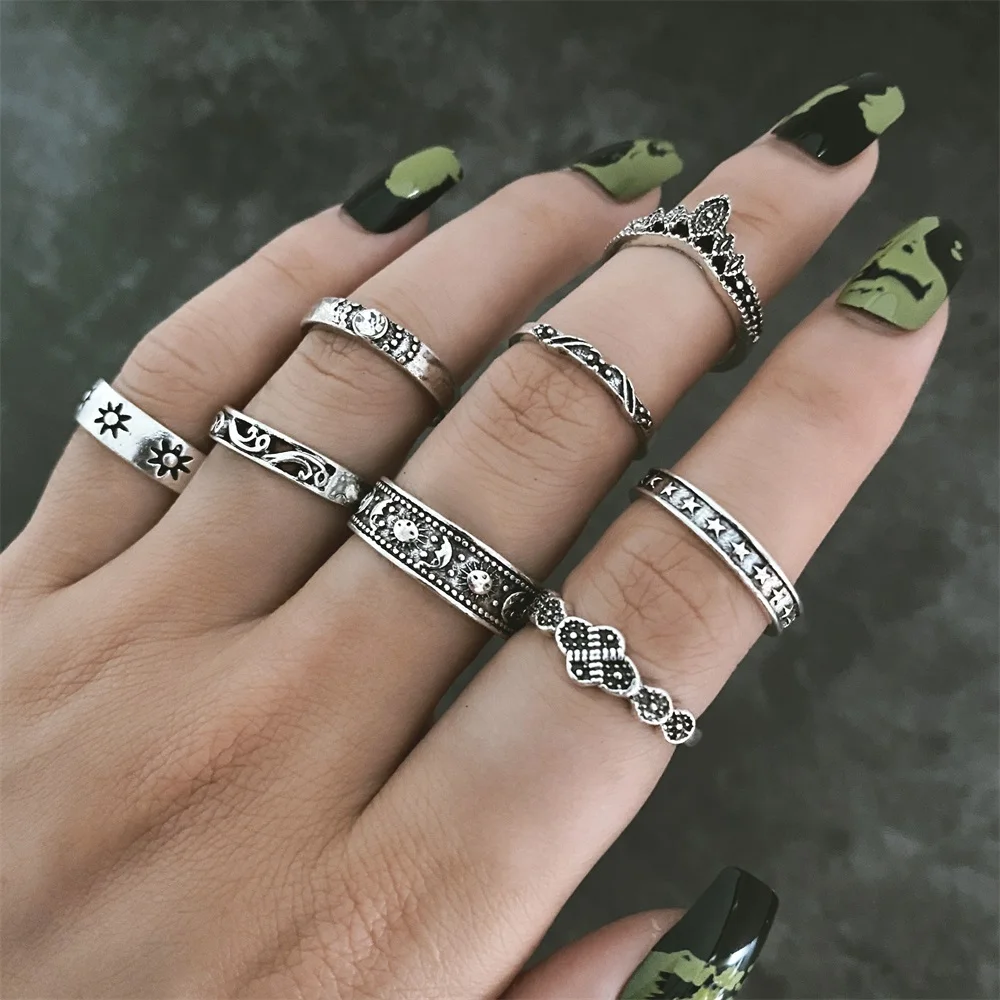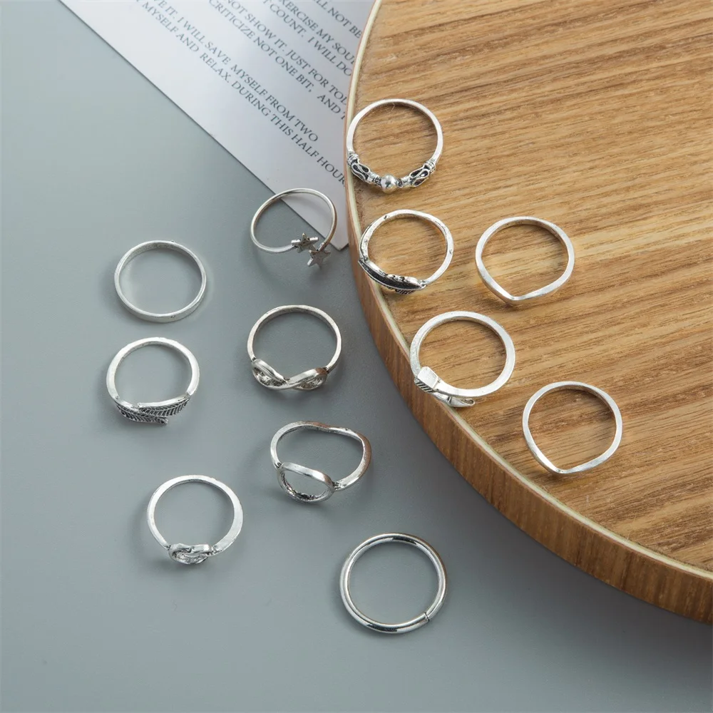 KISSWIFE Винтаж Серебряный Цвет Листья Перо Стрелка Звезды Кольца Набор Для Женщин Мужчин Геометрические Готические Кольца Модные Ювелирные Изделия Подарки