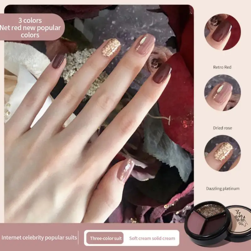 3 в 1 Твердый лак для ногтей консервированный Твердый крем стойкий ...