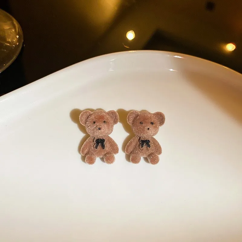 Новые милые плюшевые серьги-гвоздики ручной работы, корейские серьги с милым медведем, модные ювелирные изделия, трехмерные серьги с животными