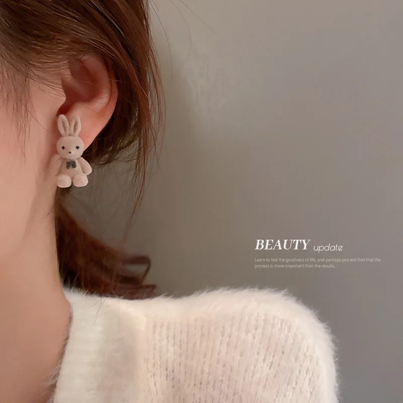 Флокированные плюшевые серьги в виде кролика, милые коричневые серь...