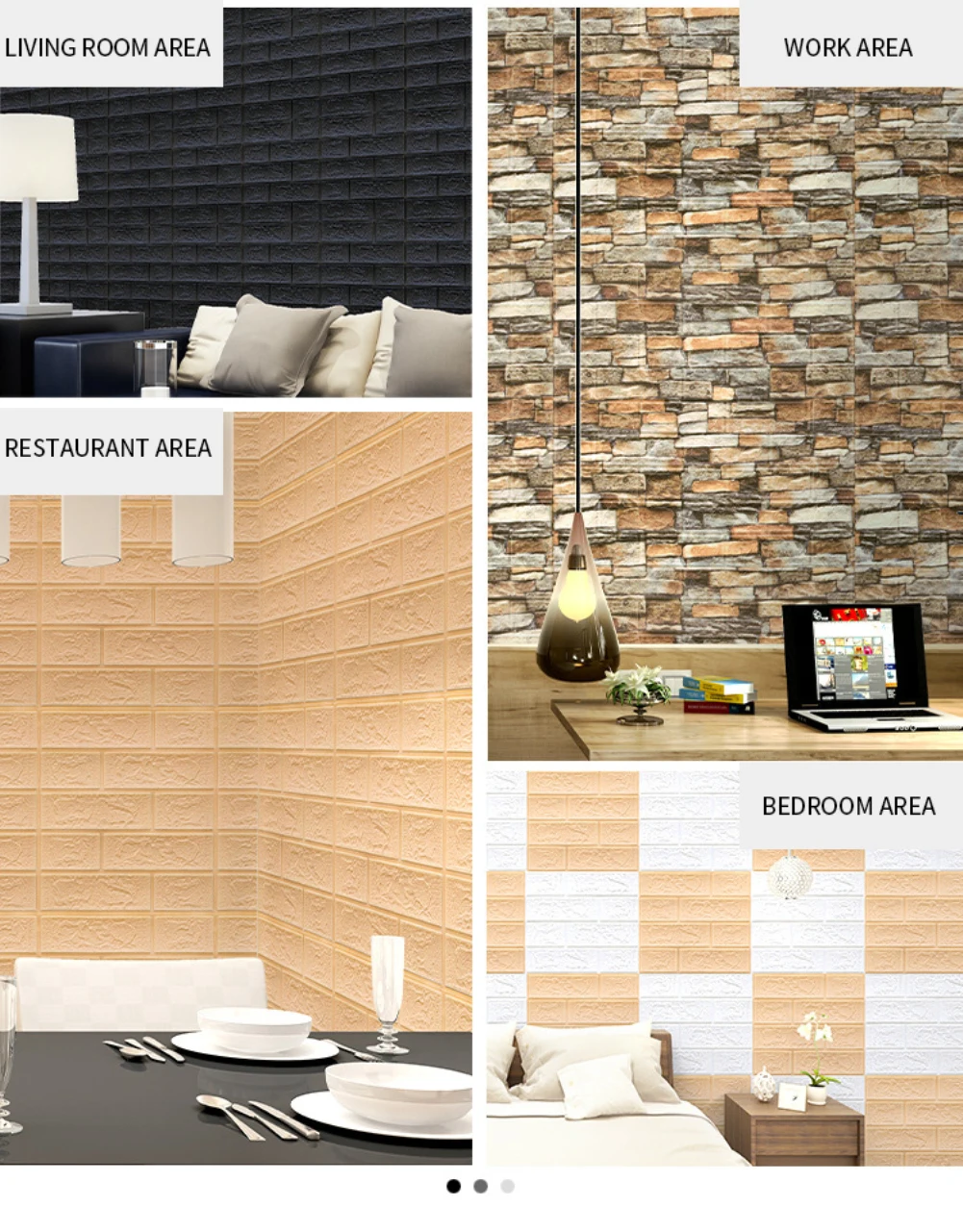 C. Многоцветные варианты: Эти 3D наклейки для обоев из пенопласта поставляются с различными цветами, которые можно смешивать и сочетать с эстетическим внешним видом и дизайном. 3D кирпичные обои, которые имеют белый, розовый, синий, серый, зеленый, черный, коричневый и другие цвета для вас, чтобы выбрать свой любимый цвет.