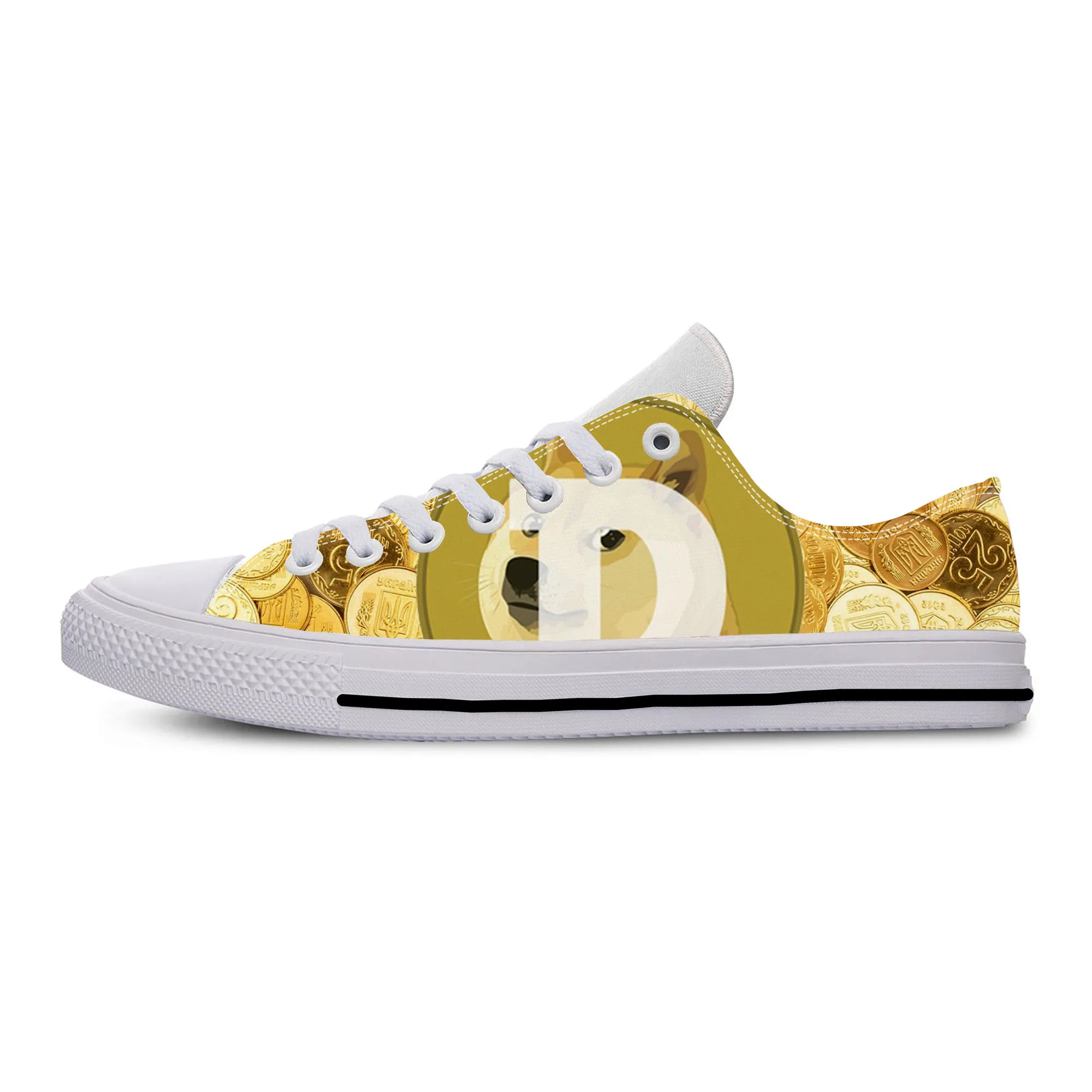 Кроссовки Dogecoin Doge мужскиеженские с рисунком Биткоин и криптовалюты, повседневная Тканевая обувь с низким верхом, дышащие легкие кеды с 3D принтом