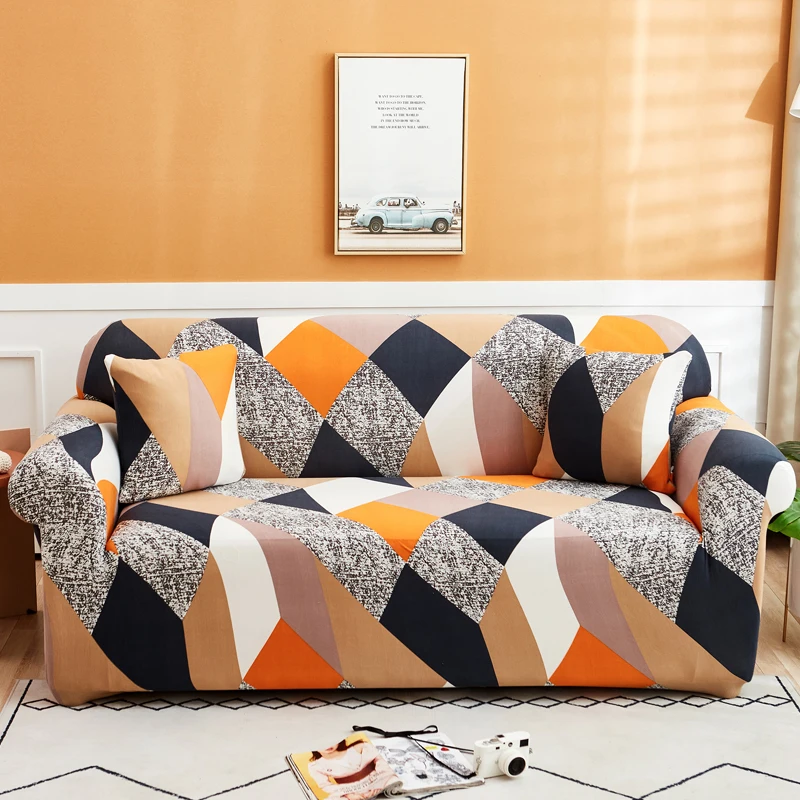 Эластичный чехол для 1234-местного дивана с геометрическим рисунком