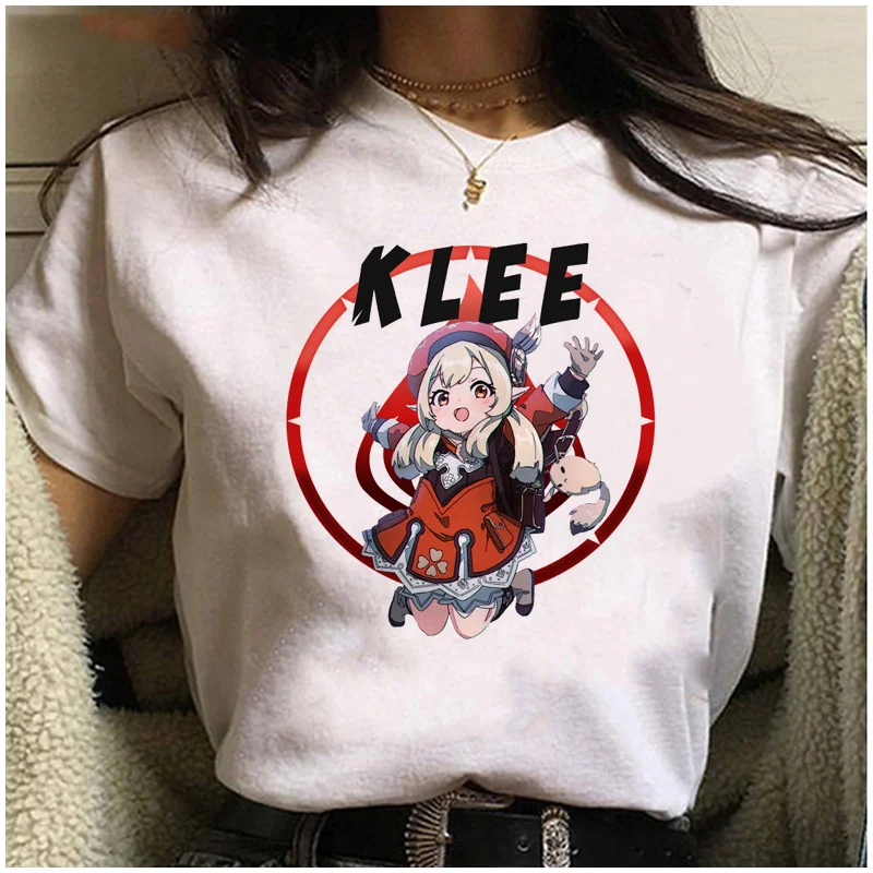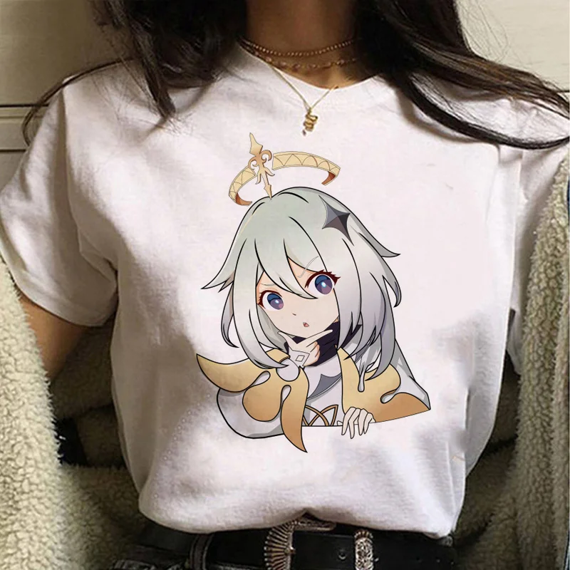 Футболка Genshin Impact женская с забавным мультяшным графическим принтом, милая уличная одежда в стиле Харадзюку, Милая футболка с рисунком аниме, летние топы