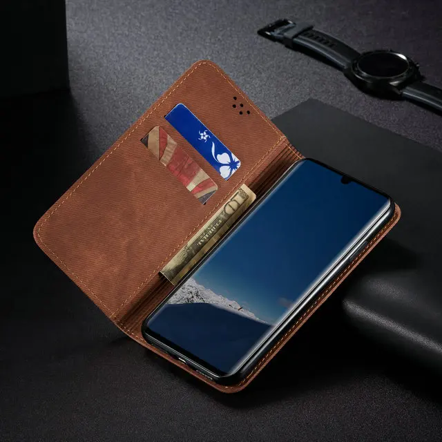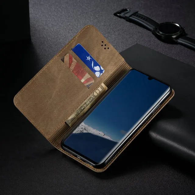 Роскошный ковбойский джинсовый флип-чехол-бумажник для HUAWEI P30 Series