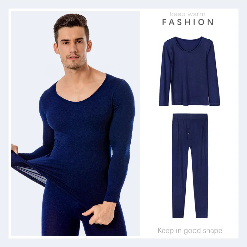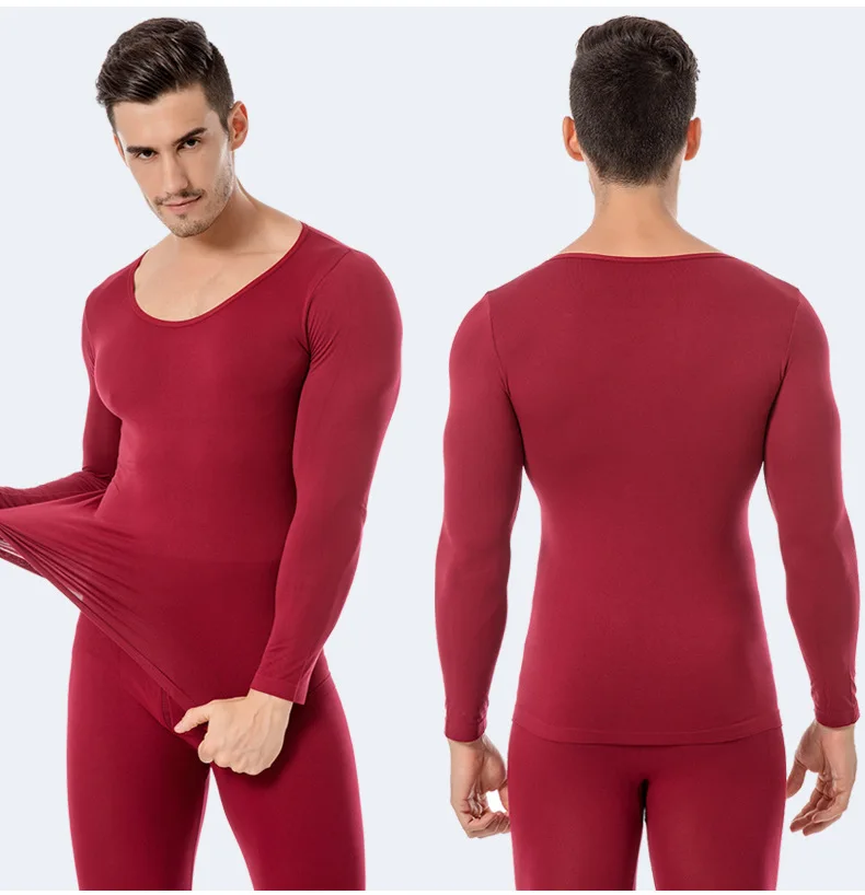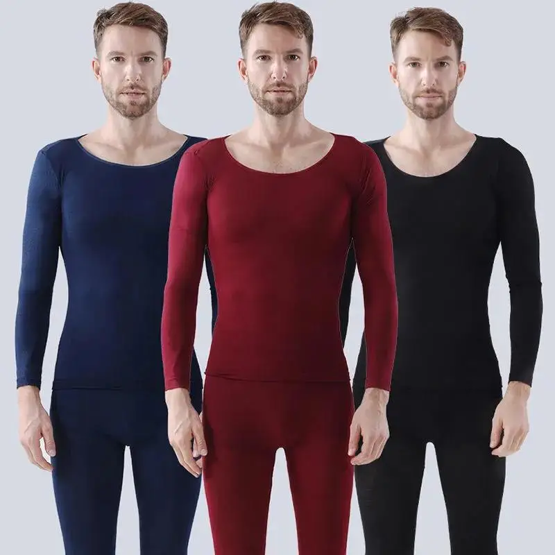 Мужской зимний бесшовный эластичный костюм, термобелье, однотонное,...