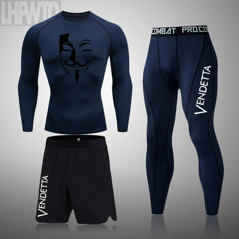 Костюм мужской спортивный компрессионный из футболки и брюк, 2-3 пр...
