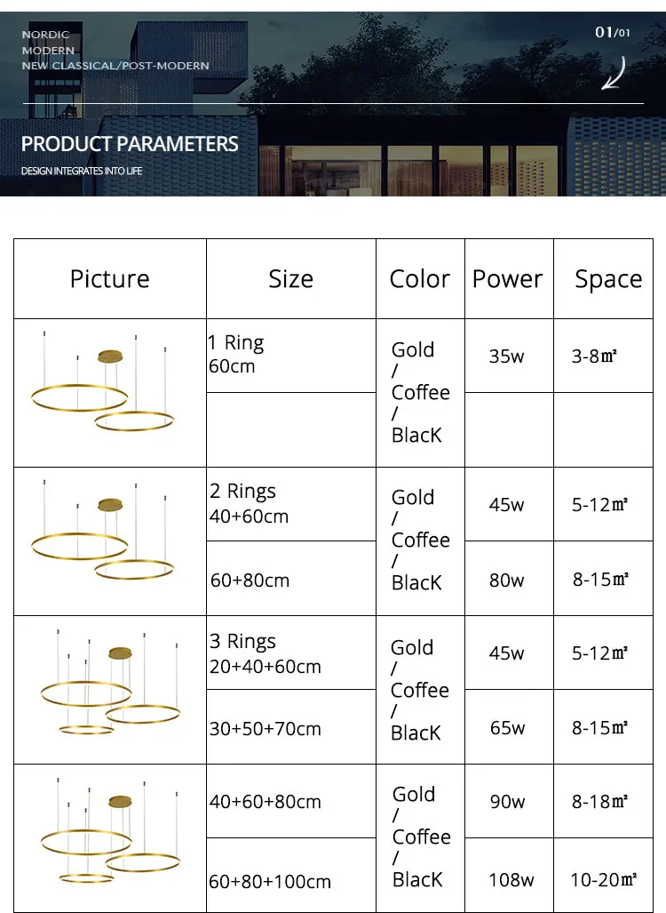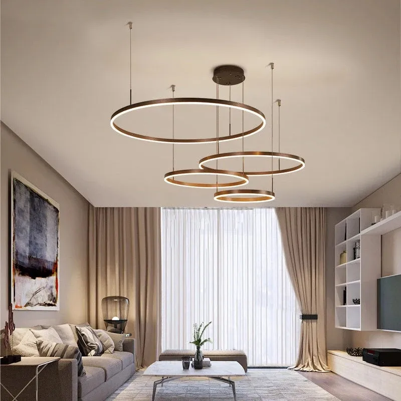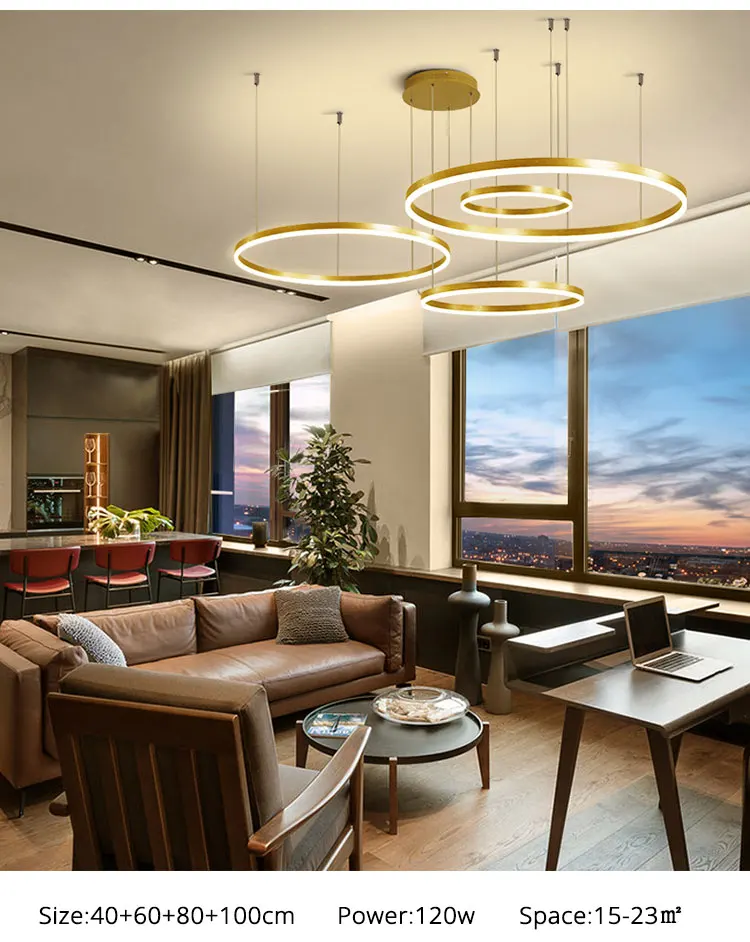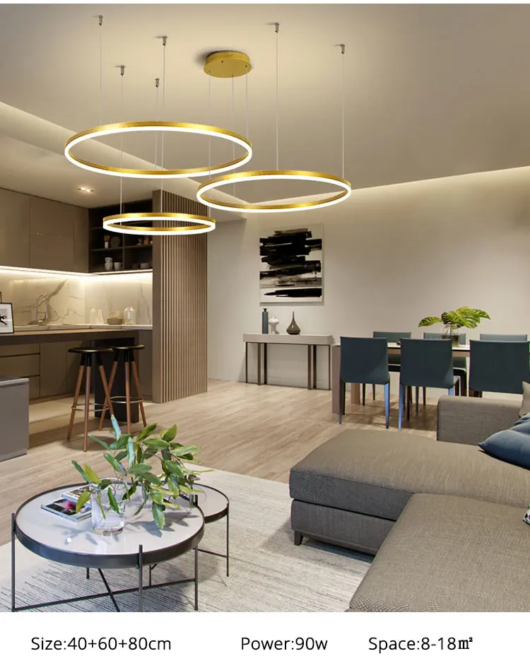 Современная простая светодиодная люстра, светильник с круглыми коль...
