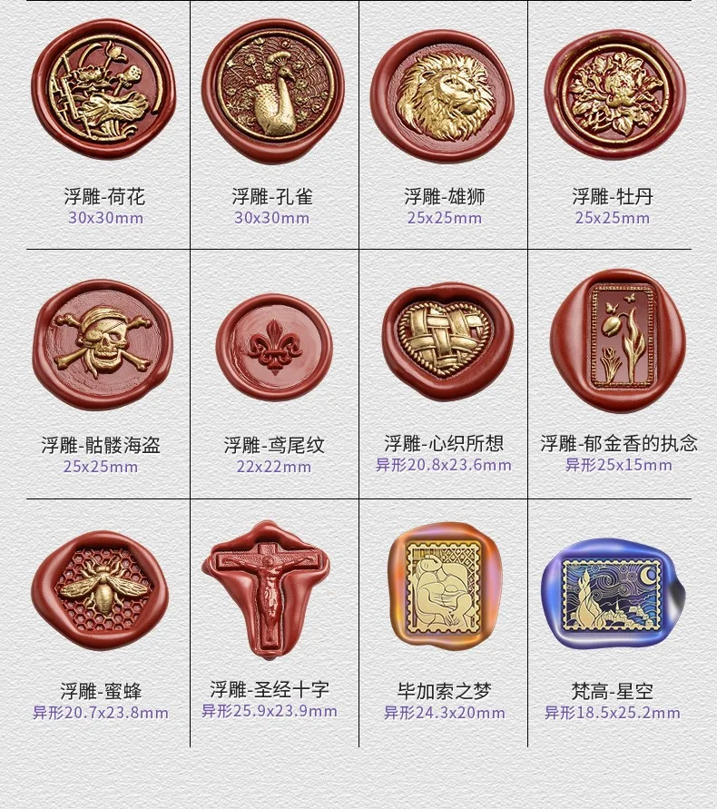 Рельефные штампы для Запечатывания Воском irрегулярной формы, латун...