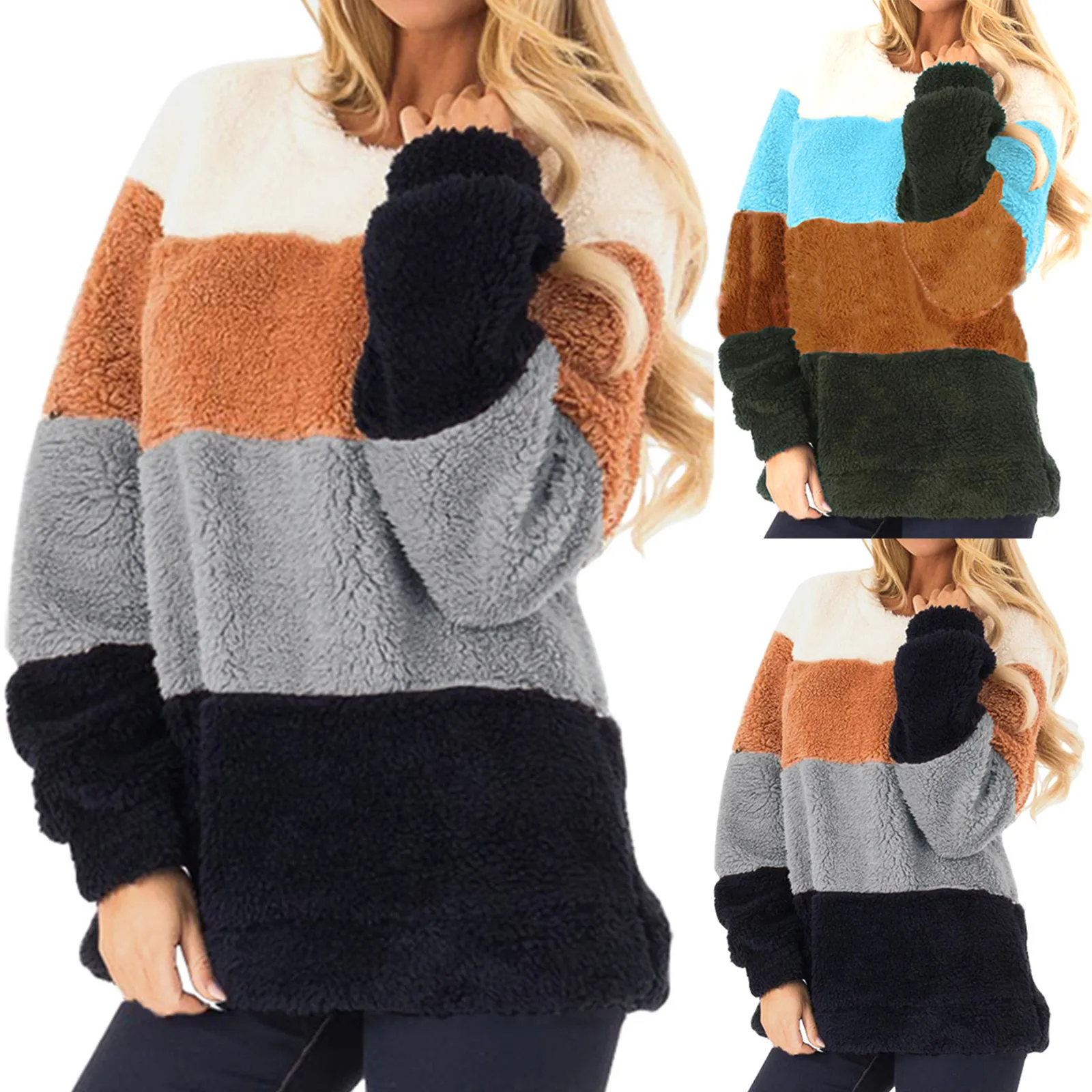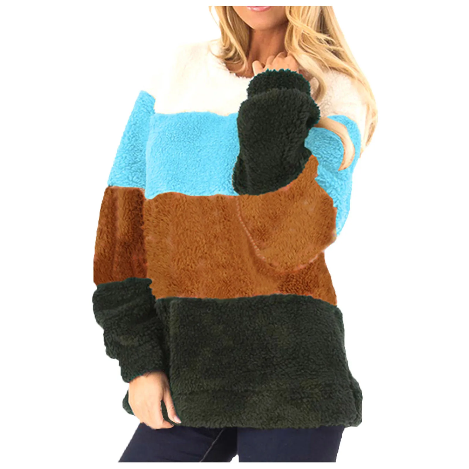 Женский плюшевый свитер, сезон осень-зима 2021, Женский свитшот, топы, новая мода, пуловер с круглым вырезом и длинными рукавами для женщин