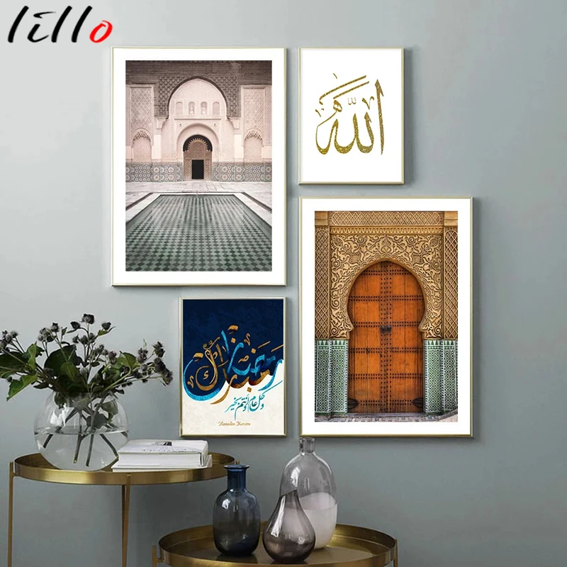 Марокканская золотая дверь Аллах Исламская архитектура ретро холст ...