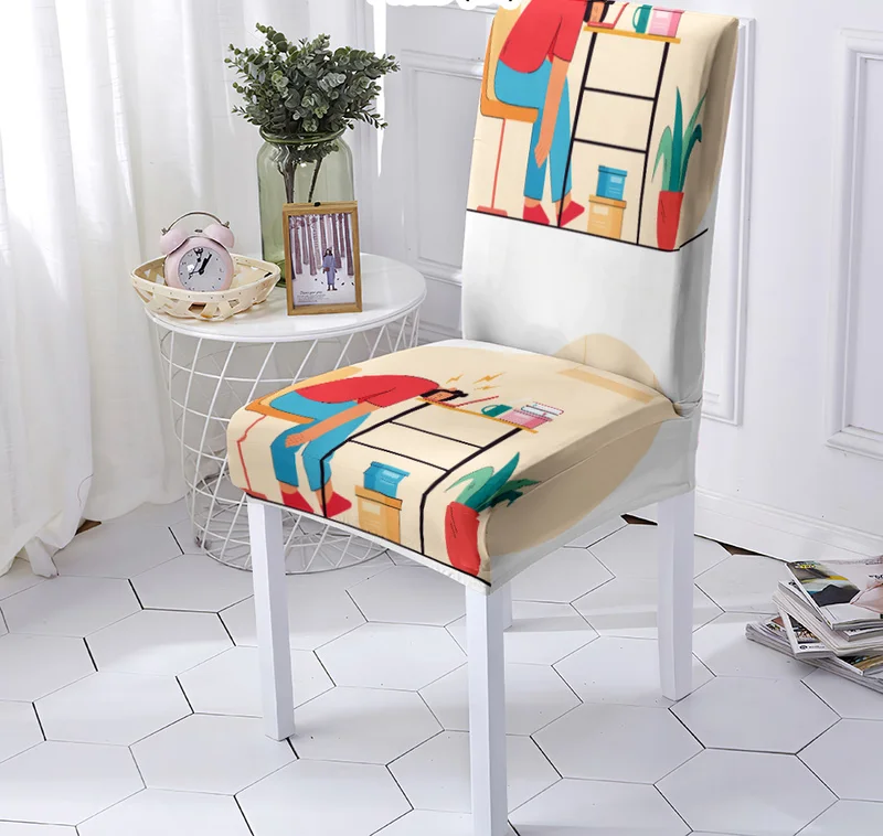 Современный чехол на стул из спандекса с принтом, съемный эластичны...