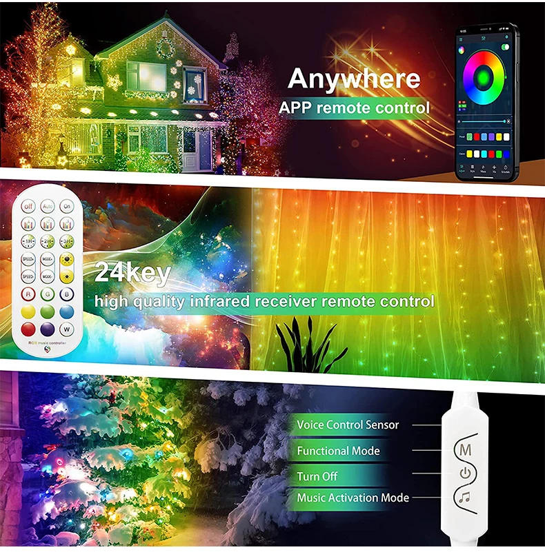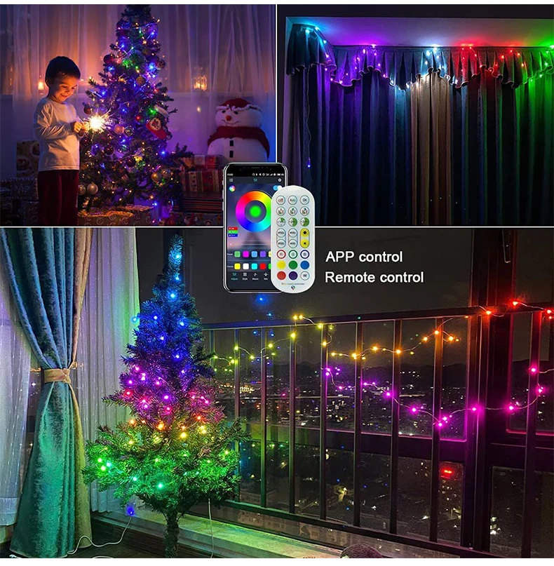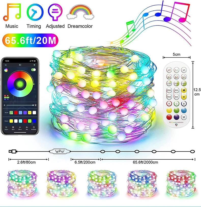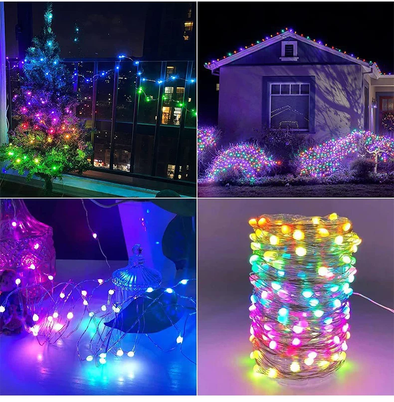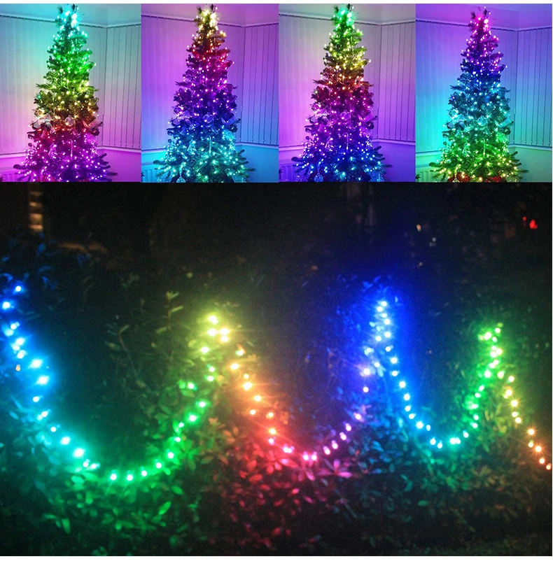 Гирлянда, Рождественское украшение, светодиодная гирлянсветильник Dreamcolor, гибкий провод с дистанционным управлением, 20 м, Для Новогоднего декора 2022