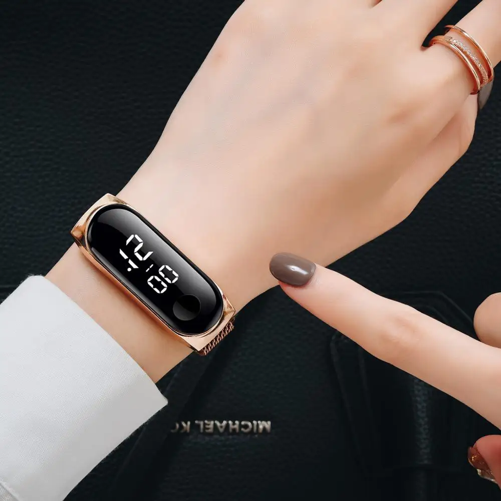 Часы женские электронные, с железным ремешком на присоске, с цифров...