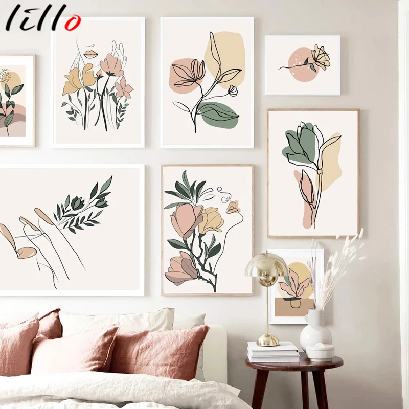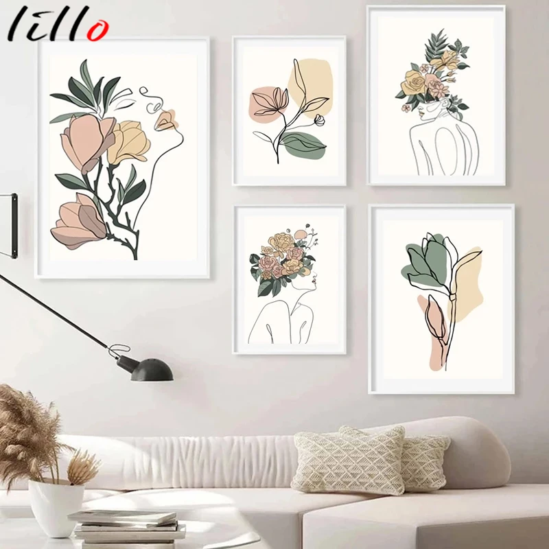Абстрактная женщина Сексуальная линия Бегония цветок настенная Картина на холсте скандинавские постеры и принты настенные картины для декора гостиной