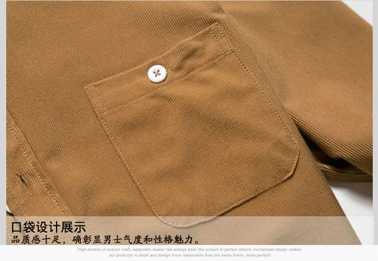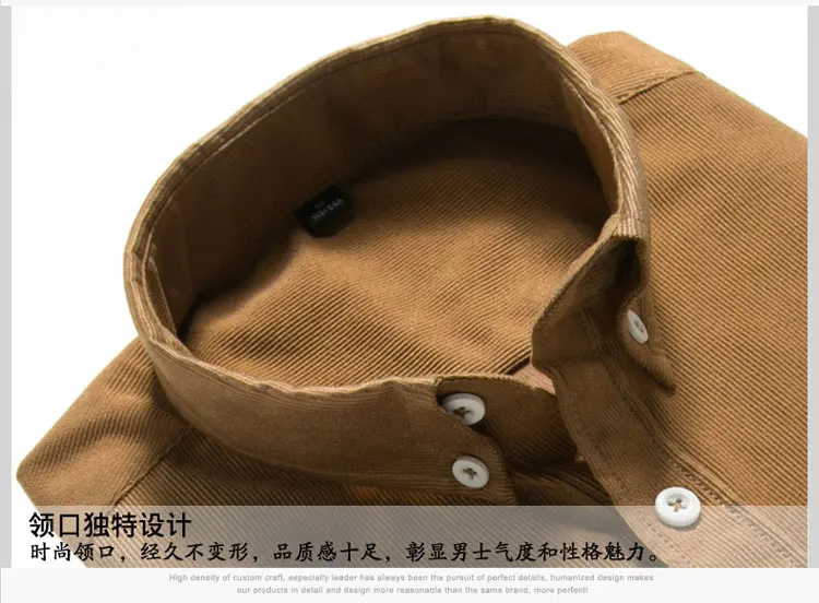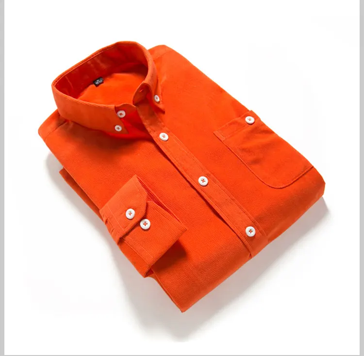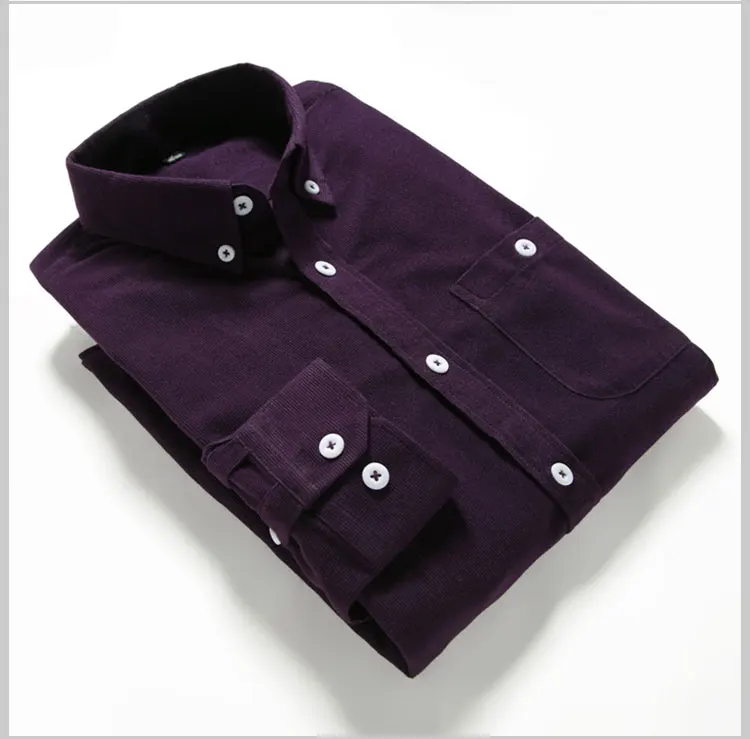 Однотонная мужская Вельветовая рубашка с длинным рукавом
