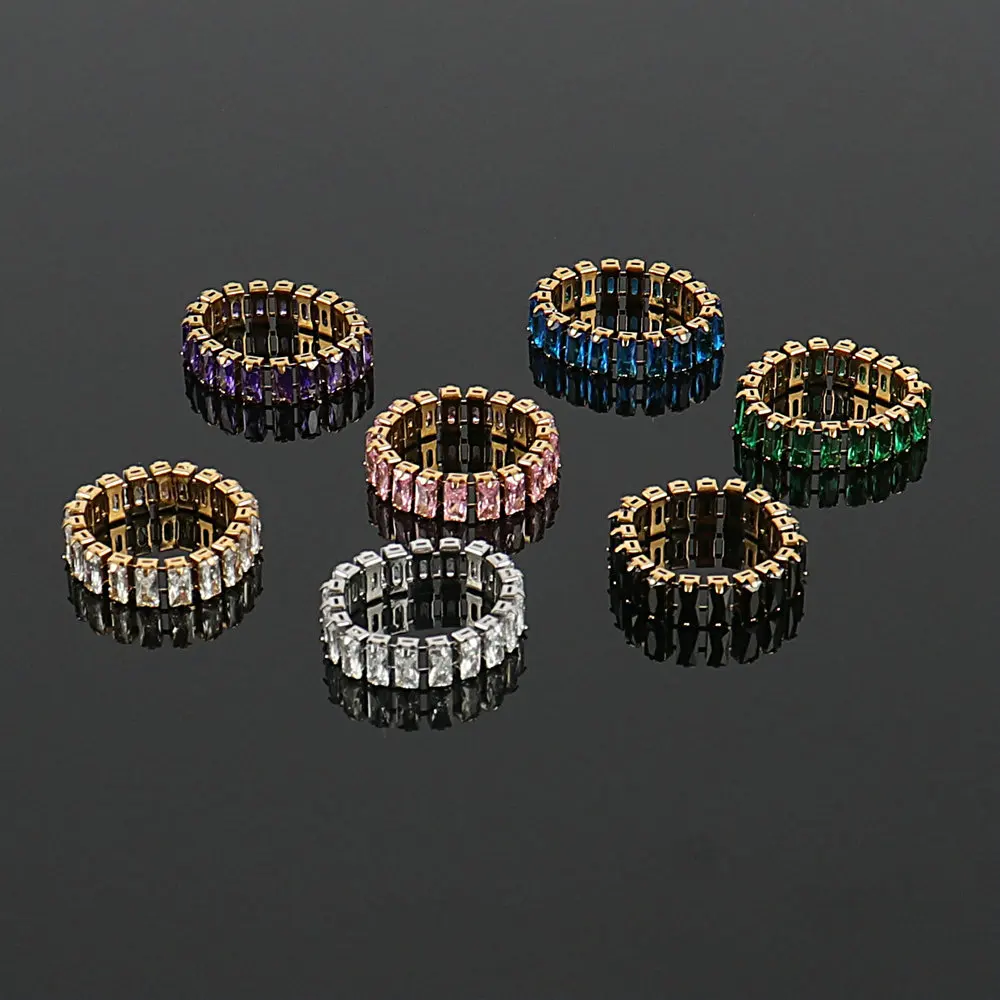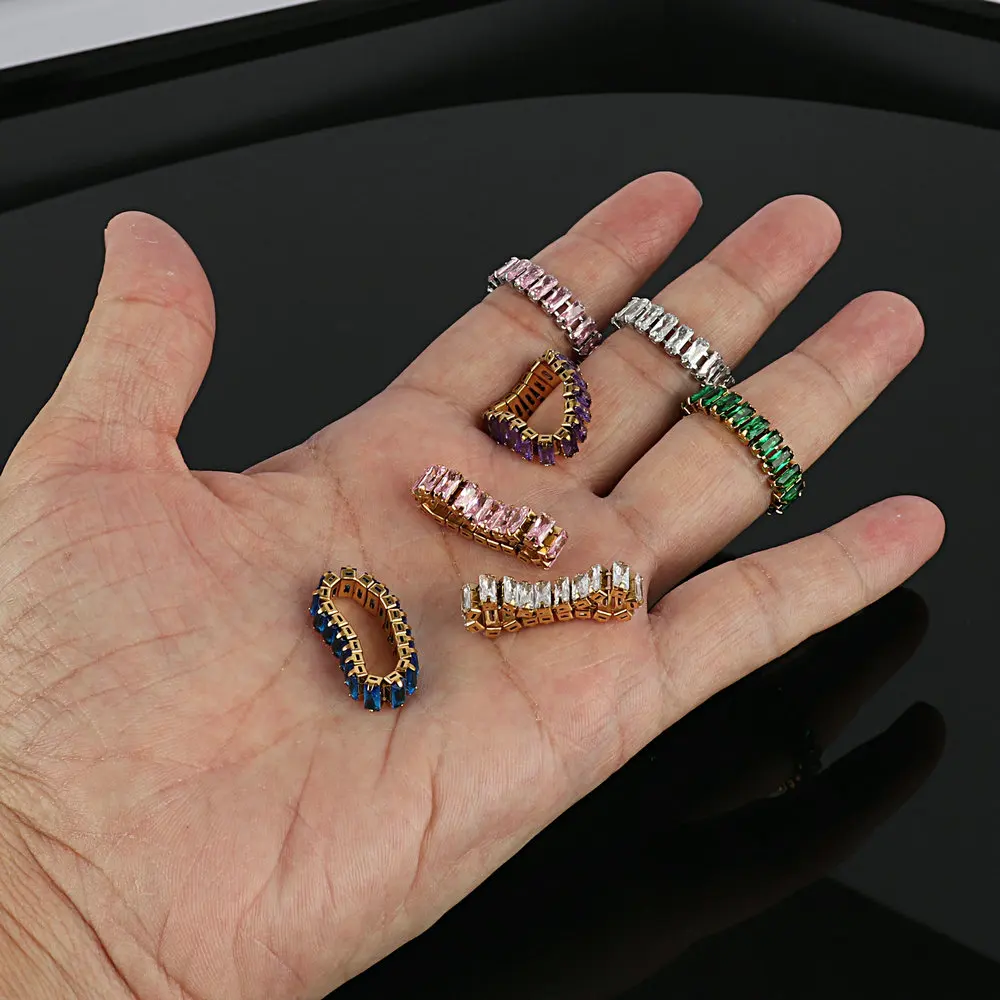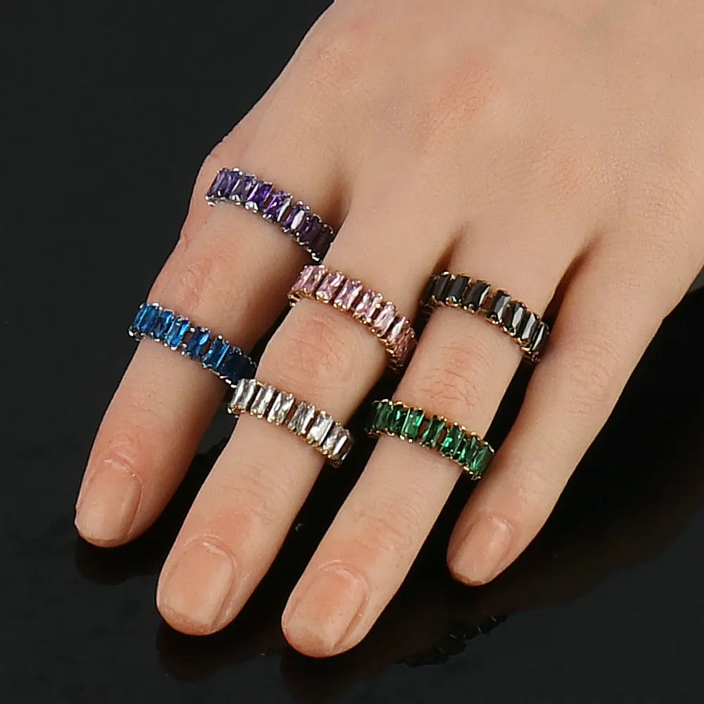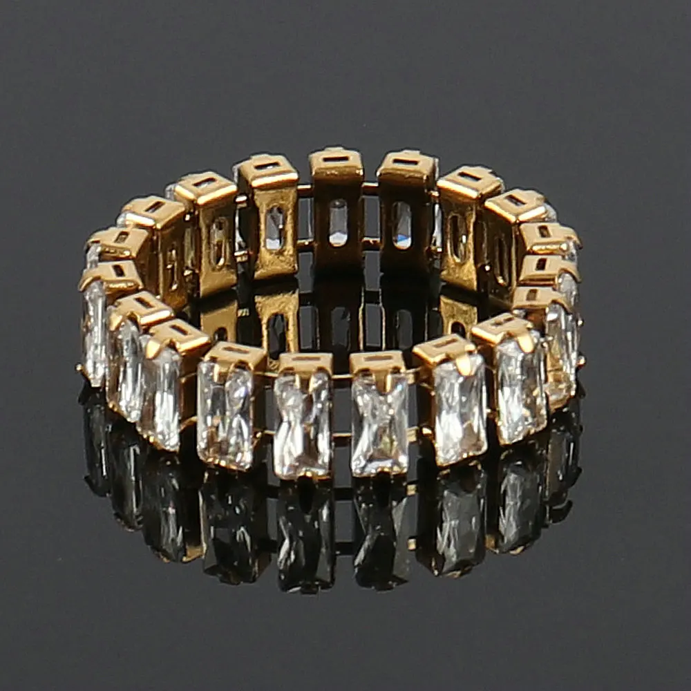 Кольцо женское из нержавеющей стали золотого цвета, модное роскошное кольцо с кубическим цирконием, Очаровательная багета, Ювелирное Украшение для вечеринки