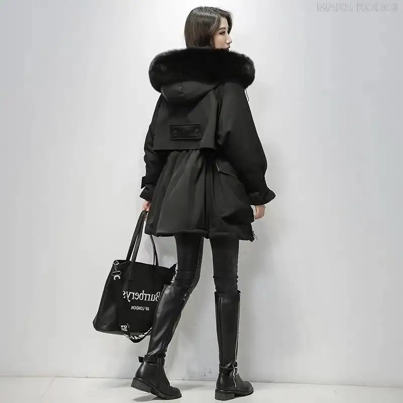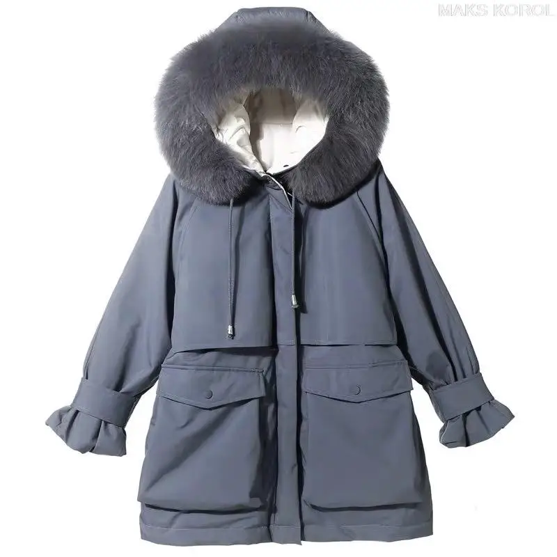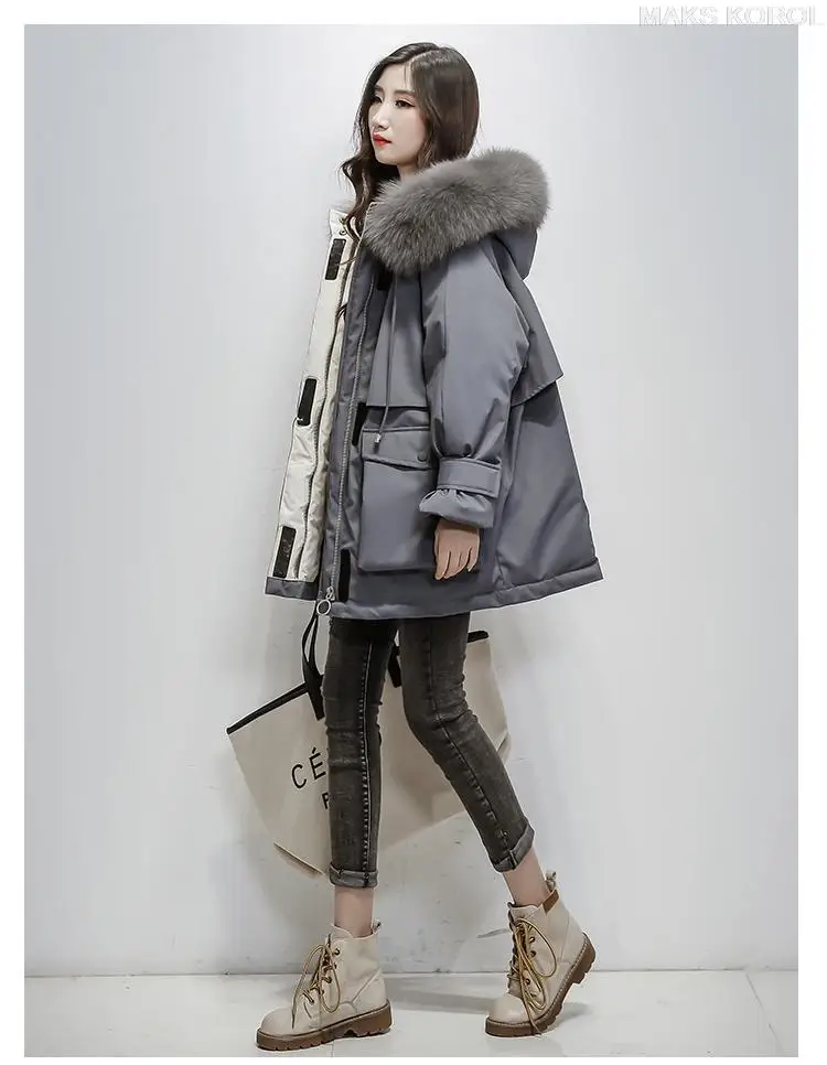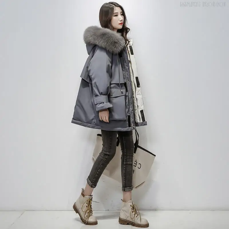 Новинка 2021, женская зимняя куртка с большим меховым воротником и ...