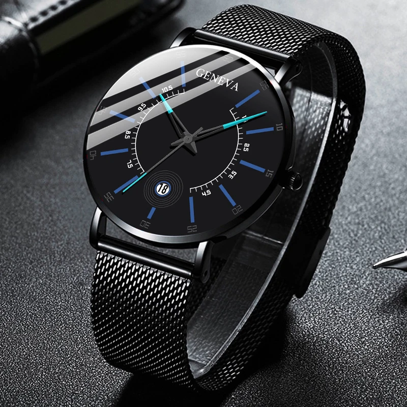 Мужские часы Женева 2020 года, черные ультратонкие кварцевые наручн...