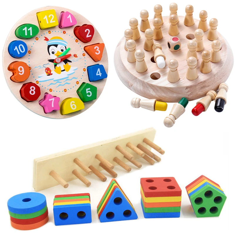 Детские деревянные пазлы, игрушки, палочки с памятью, игра в шахмат...