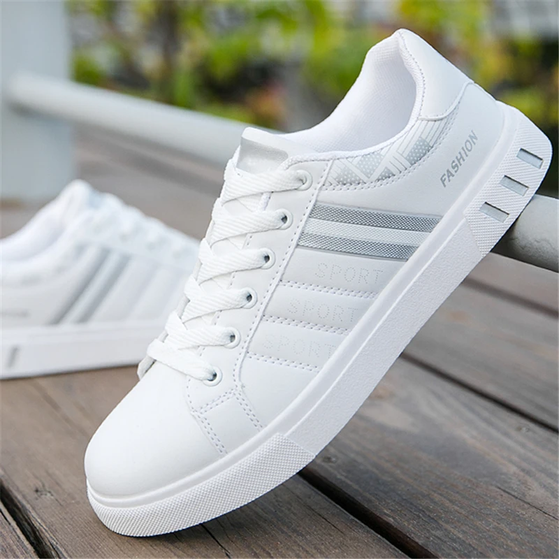Кроссовки мужские, из вулканизированной кожи, белые, Нескользящие