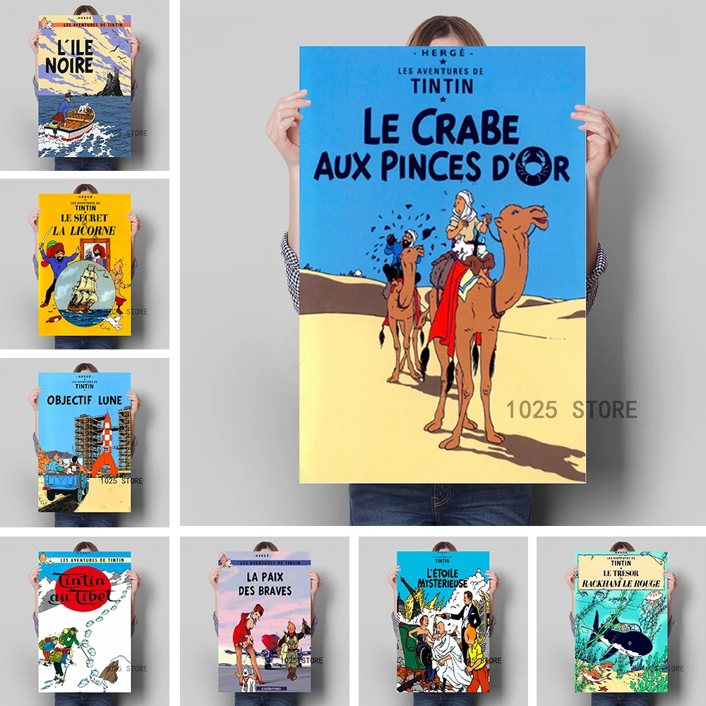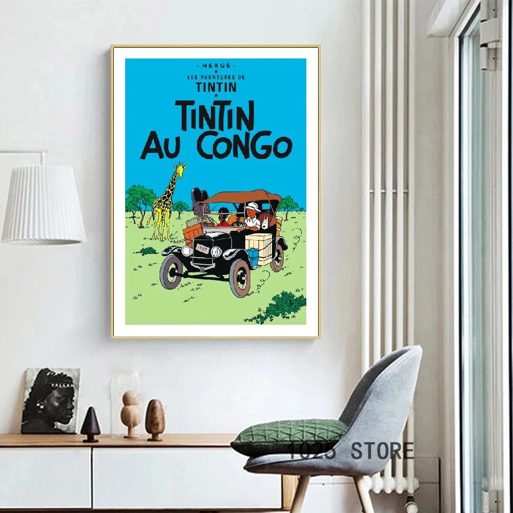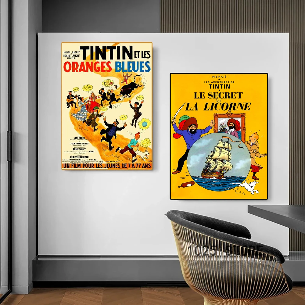 Плакат с французскими комиксами Тинтин, поп-арт, реактивные приключения, картина, печать на холсте, современное домашнее украшение для детской комнаты, картина