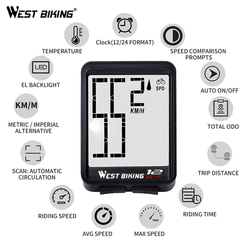 Портативный велосипедный компьютер WEST BIKING, беспроводной проводной подсветка, цифровой спидометр, велосипедный компьютер, ультралегкие Аксессуары для велосипеда