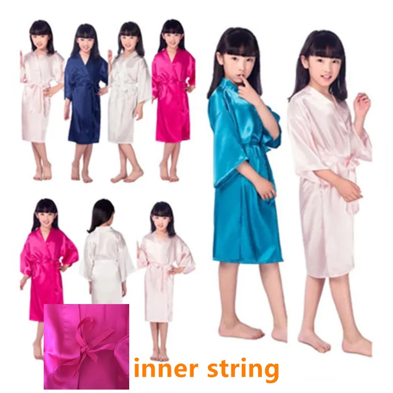 Оптовая продажа, кимоно для девочек, Шелковый Атласный Свадебный халат для невесты, Одноцветный халат, ночной банный халат, халат для детей, B166