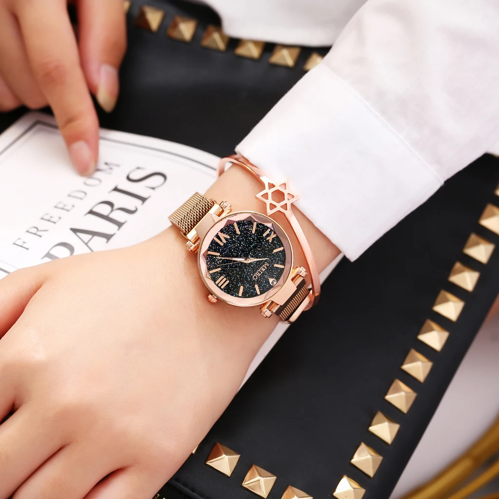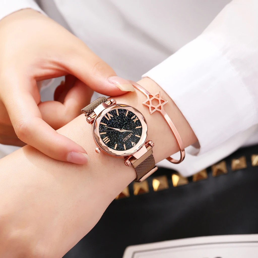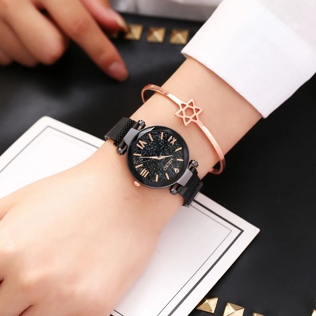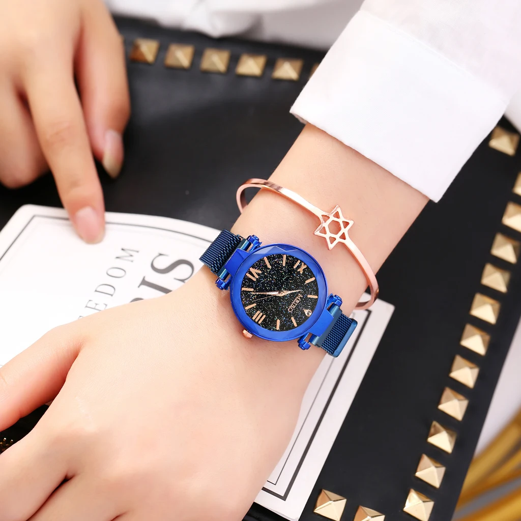 Женские кварцевые часы со звёздным небом, на магнитной застежке
