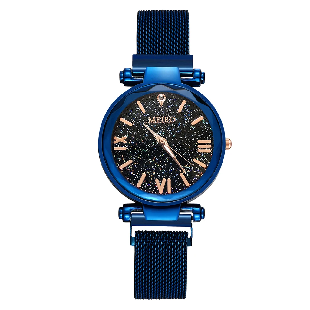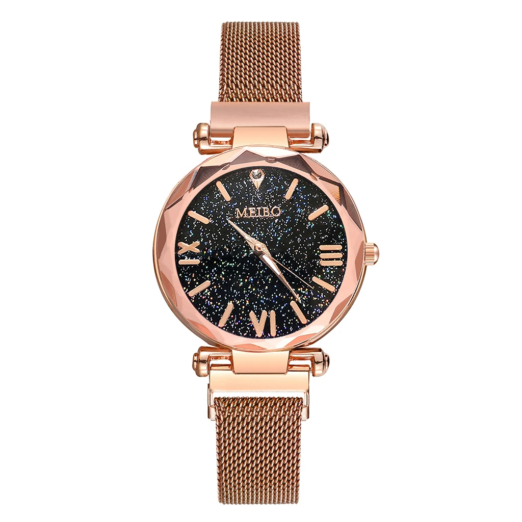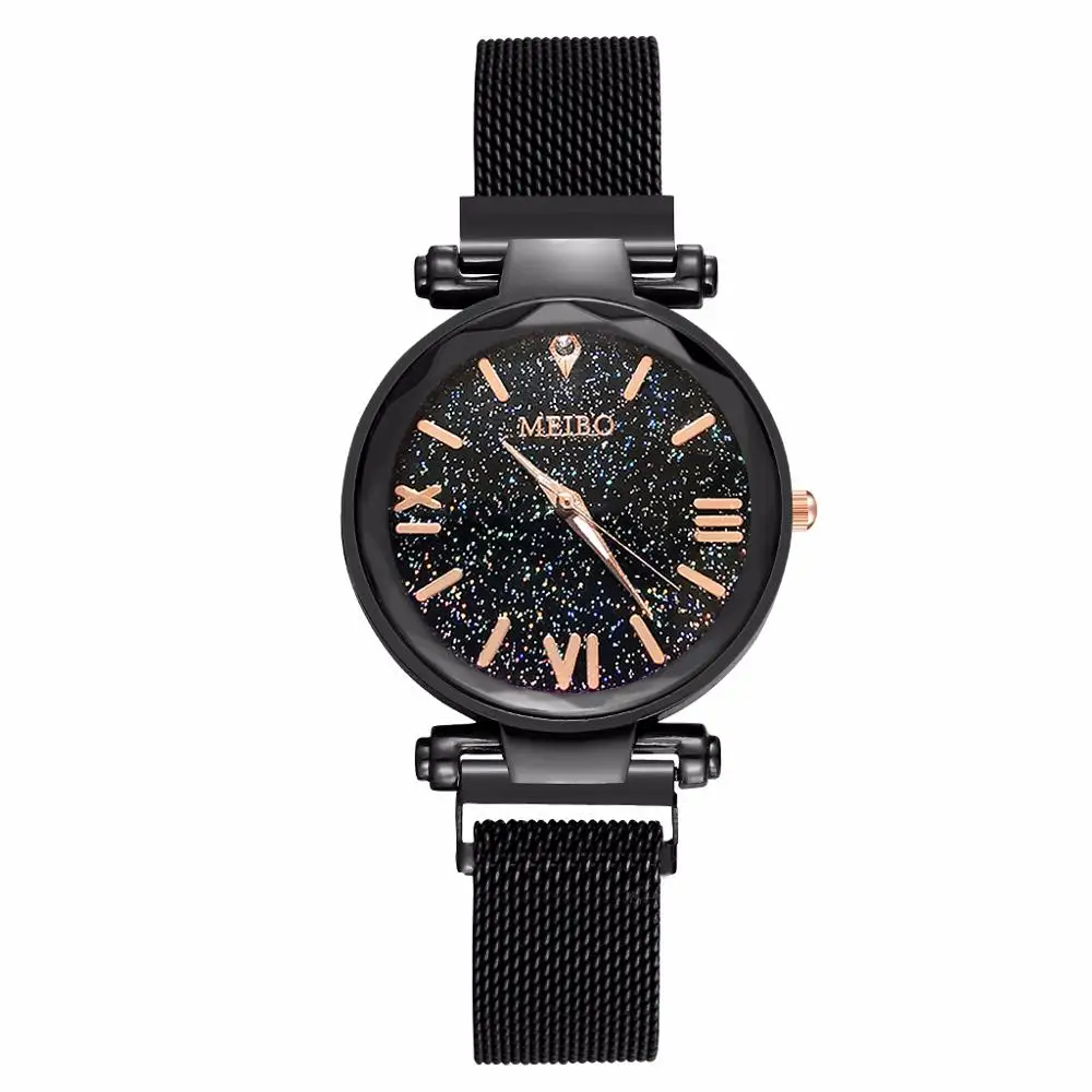 Женские сетчатые часы с магнитной пряжкой звездное небо римские цифры повседневные Роскошные дамские Геометрическая поверхность кварцевые часы Relogio Feminino