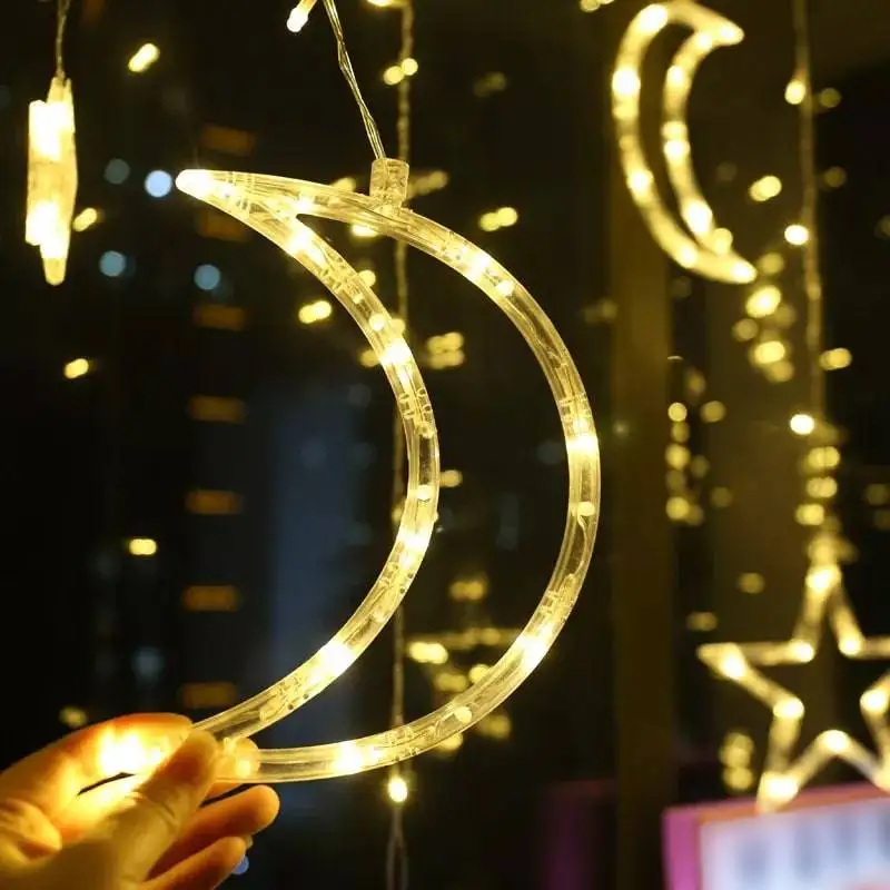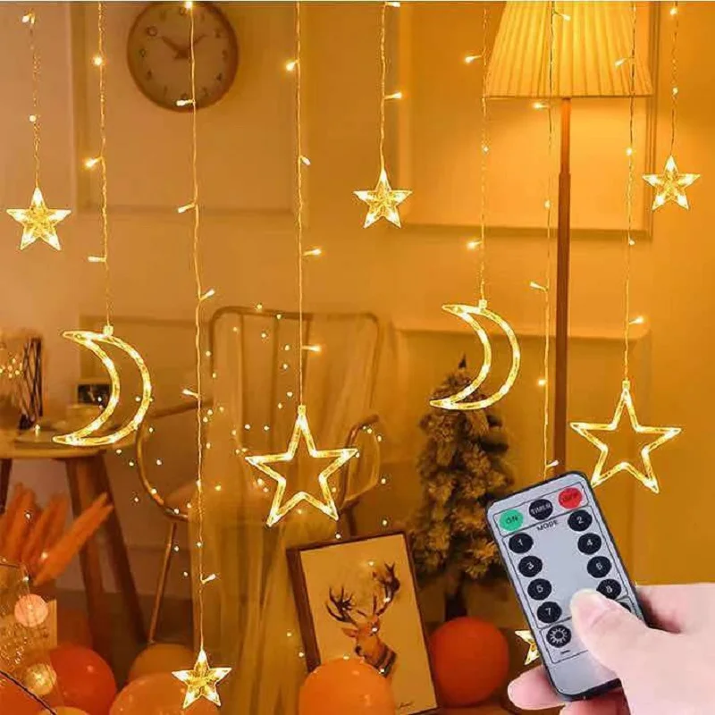 Новогодняя светодиодная гирлянда штора Месяц и звезда с пультом