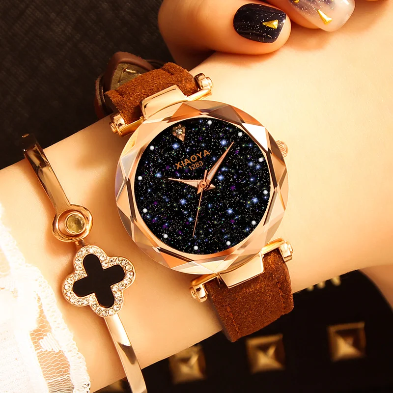 Женские часы, новинка 2019, повседневные модные кварцевые часы звездного неба, многоцветные кожаные Наручные часы, простые дизайнерские женские часы Orologio