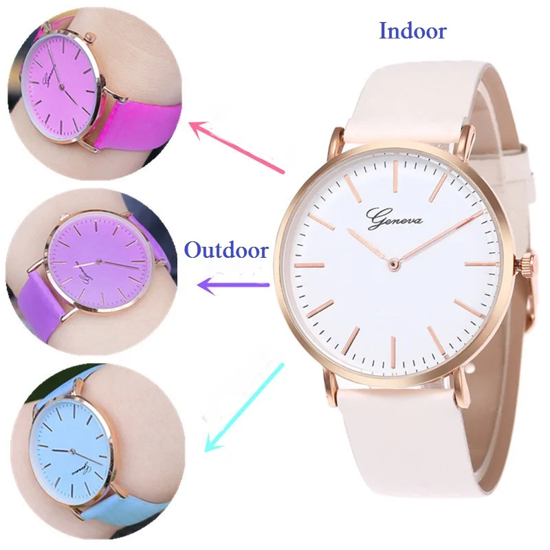 Модные дизайнерские часы с прямым солнечным светом, меняющие цвет, Спортивные Повседневные часы с ультрафиолетовым изменением цвета, Кварцевые женские наручные часы