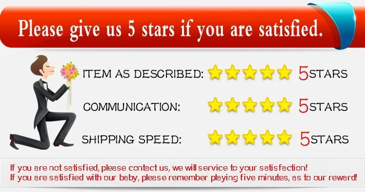 2. Если вы удовлетворены товаром, пожалуйста, оставьте положительный отзывы (5 звезд) для нас. Это очень важно для нас. Большое спасибо!