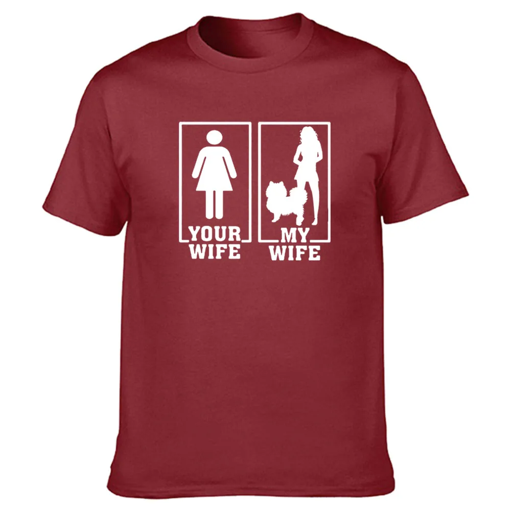 Футболка мужская с забавным принтом Моя жена-Померанский помпон, хлопковая уличная одежда с графическим принтом, с коротким рукавом, в стиле Харадзюку icon star icon star icon star icon star icon star