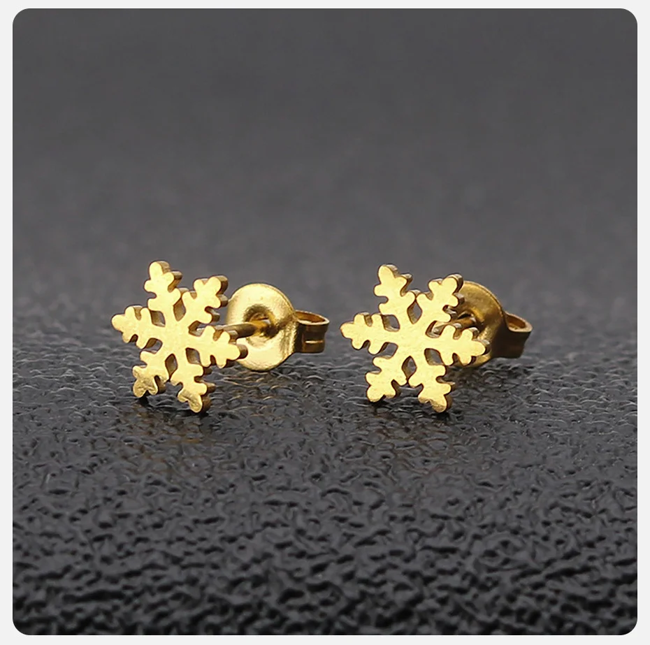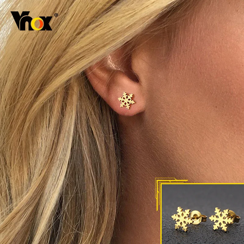 Женские серьги-гвоздики в виде снежинки Vnox, золотистые маленькие серьги из нержавеющей стали, элегантные минималистичные украшения для ушей для девушек