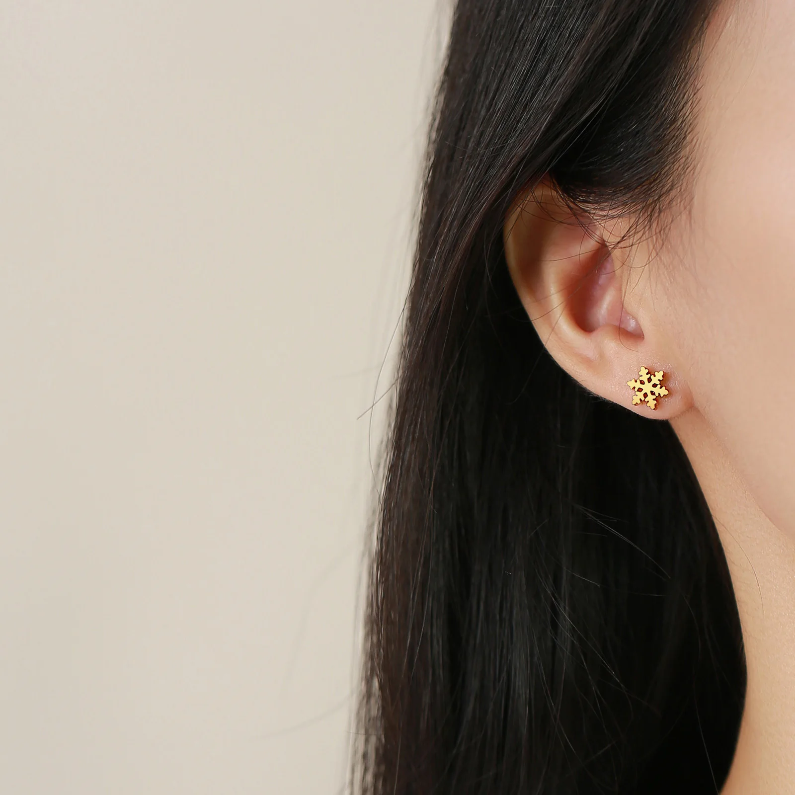 3D серьга из снежинки шпильки для женщин, крошечные серьги-гвоздики...