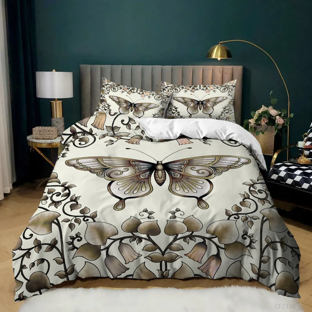 Роскошный двойной пододеяльник с бабочкой и наволочка для двуспальной кровати, милые домашние постельные принадлежности