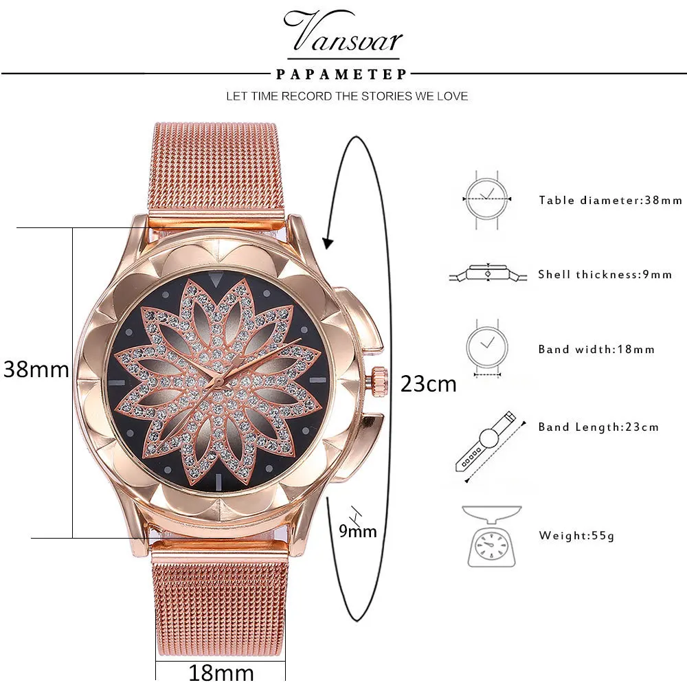 Роскошные женские часы стразы, модные женские часы с цветком из роз...