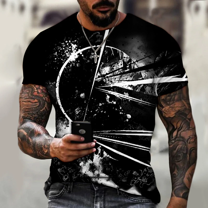 Мужская футболка с коротким рукавом, круглым вырезом и 3D-принтом