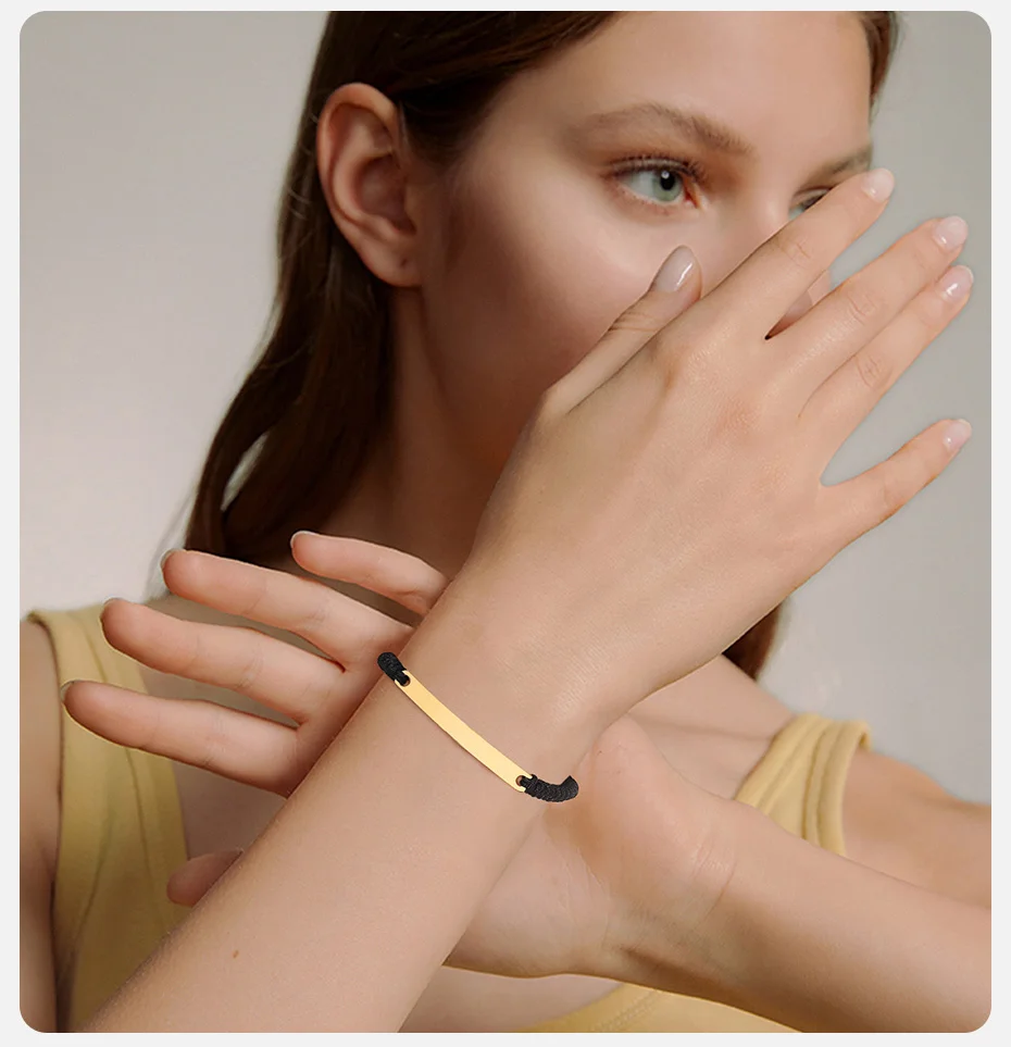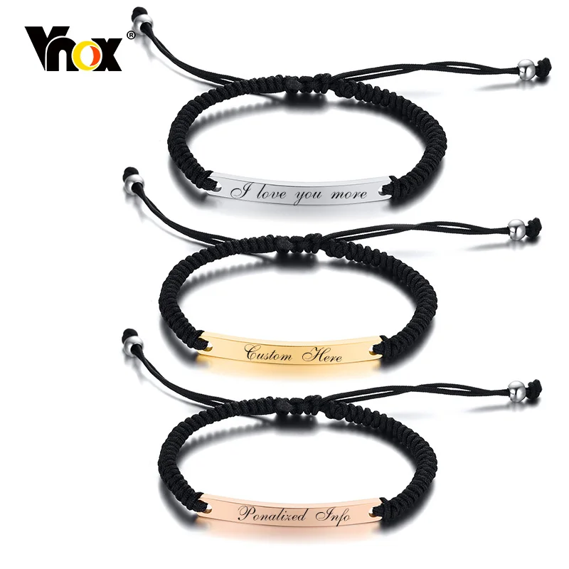 Женские браслеты Vnox с гравировкой имени влюбленной идентификационной таблички на заказ, плетеная веревочная цепочка, ювелирные изделия, металлическая бирка из нержавеющей стали, аксессуар
