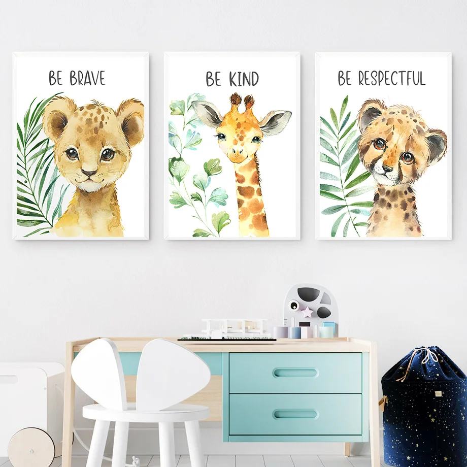 Джунгли диких животных Лев слон жираф питомник скандинавские плакат...