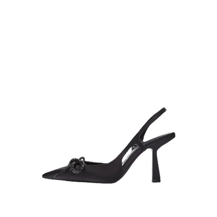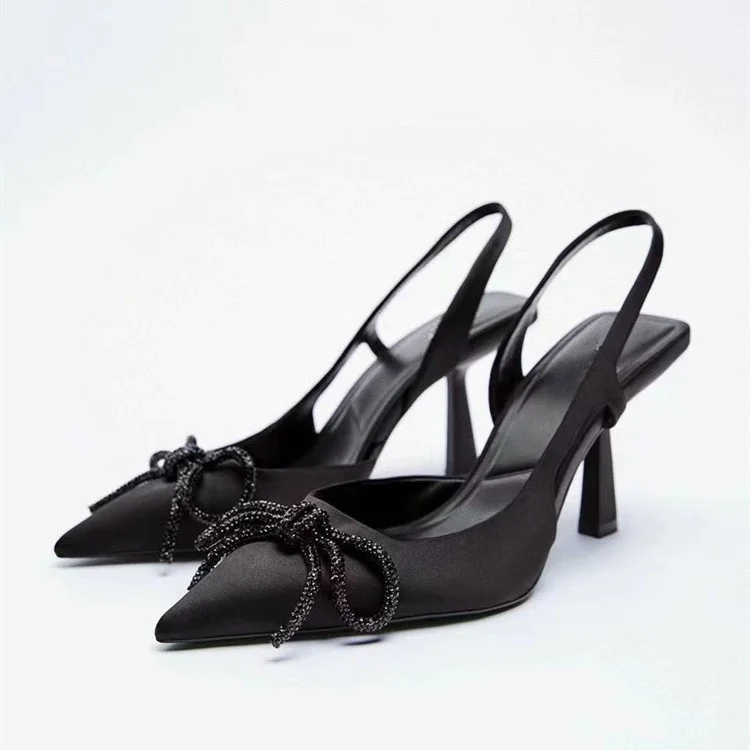 Новинка Весна 2022, черные женские сандалии с бантом, украшенные шнуровкой, с острым носком, на высоком каблуке-шпильке